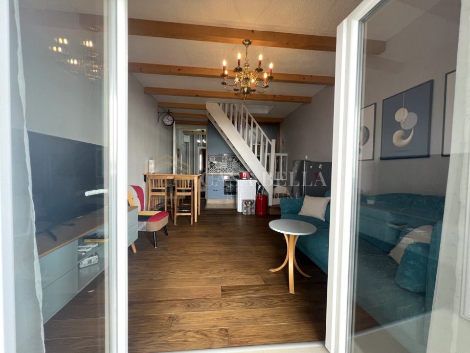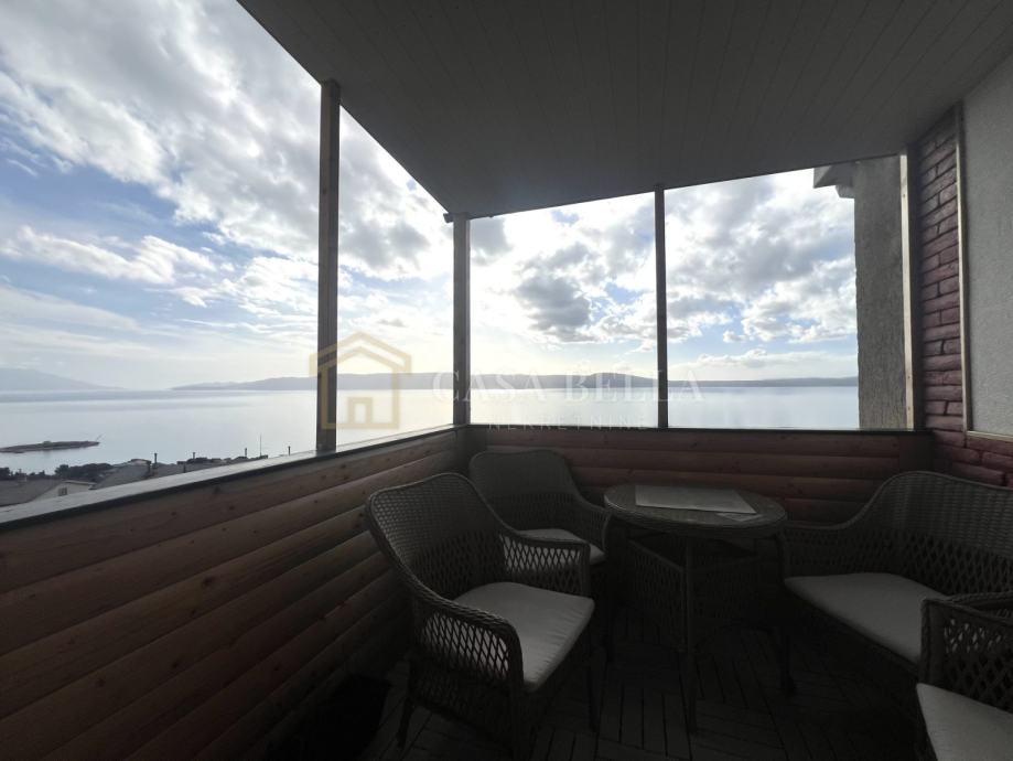CASA BELLA iz ponude izdvaja atraktivan dvoetažni stan smješten u manjoj, uredno održavanoj stambenoj zgradi na drugom, ujedno i posljednjem katu. Stan se ističe spektakularnim panoramskim pogledom na more, otok Krk, otočić San Marinu i Marinu Novi Vinodolski.