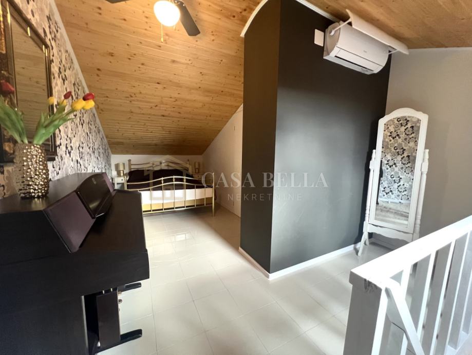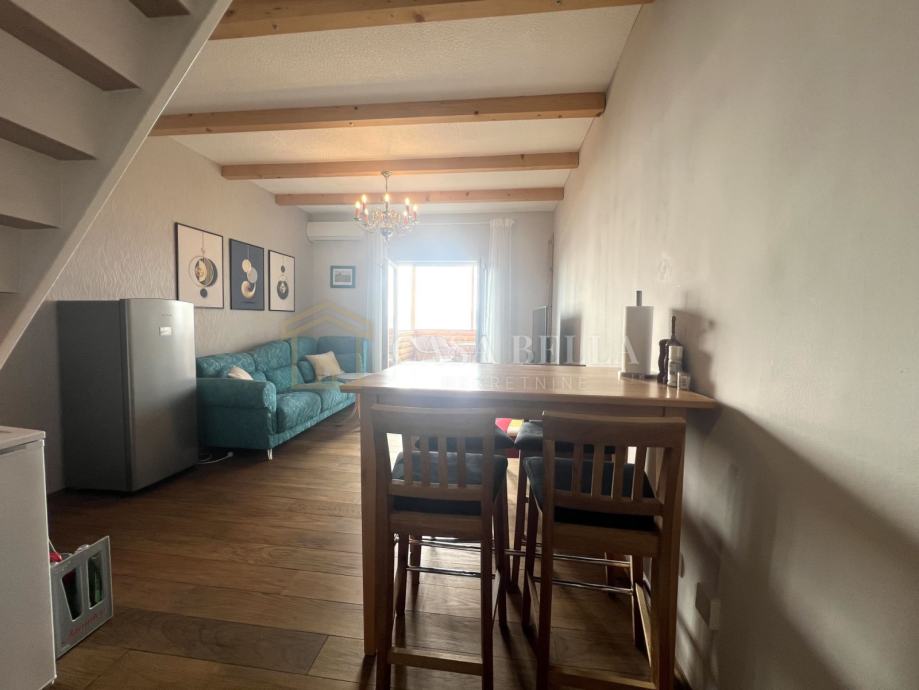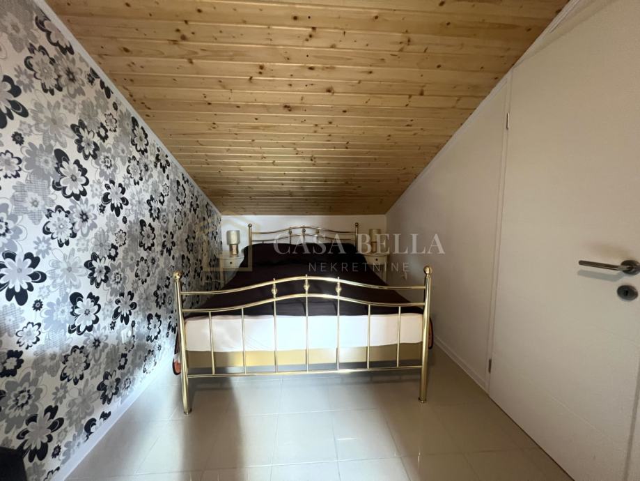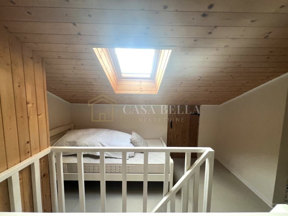 Na prvoj etaži nalazi se spavaća soba, kupaonica, prostrani open-space dnevni boravak s kuhinjom i blagovaonicom te izlaz na balkon s očaravajućim pogledom. Unutarnje stepenice vode na drugu etažu, gdje se nalazi još jedna spavaća soba s vlastitom kupaonicom. Krovni prozor osigurava dovoljno prirodne svjetlosti na gornjoj etaži, dok južna orijentacija dnevnog boravka omogućava obilje svjetla tijekom cijelog dana.