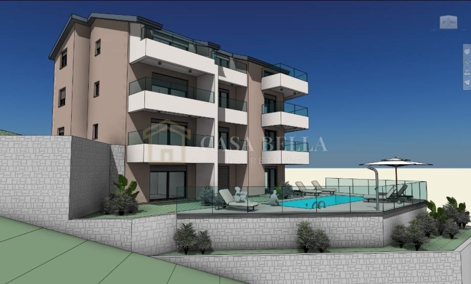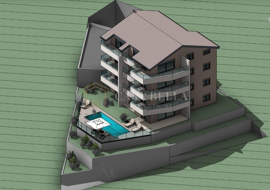 Ukupno se radi o zgradi s osam stanova i zajedničkim bazenom.