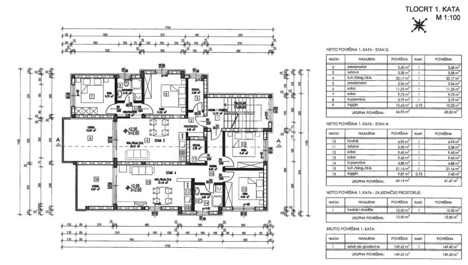 Stan je neto površine 63,52m2, dvije sobe, kupaonica, kuhinja, dnevni boravak, ostava i loggia.Stanu pripada jedno parkirno mjesto.