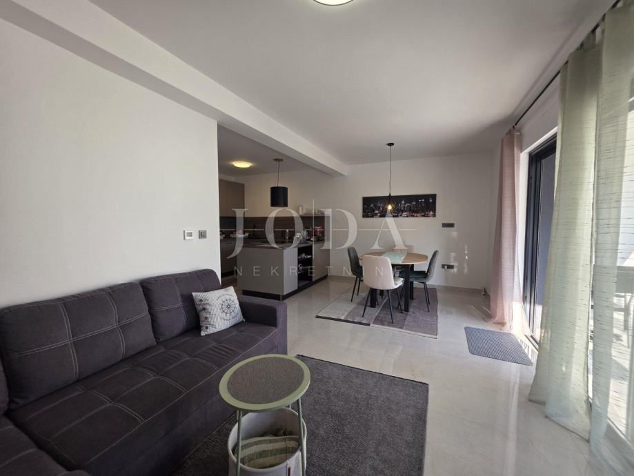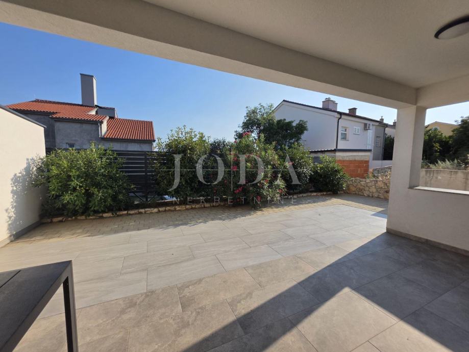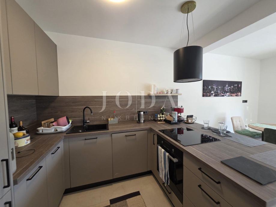 Prodajemo u mirnom i novom dijelu grada prostran i moderan stan u prizemlju novogradnje, s vlastitom okućnicom koja pruža privatnost i udobnost. Stan je projektiran i uređen s posebnom pažnjom na funkcionalnost i estetiku te se sastoji od kuhinje s blagovaonicom i prostranog dnevnog boravka u open space konceptu, iz kojeg se izlazi