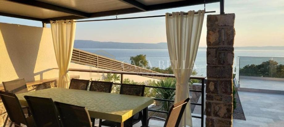 Na izuzetno atraktivnoj i traženoj lokaciji, svega približno 70 metara od mora i najbliže plaže, prodaje se predivna novoizgrađena vila moderne arhitekture s očaravajućim, otvorenim panoramskim pogledom na more. Vila je raspoređena na tri etaže – suteren, prizemlje i kat – te je projektirana s naglaskom na funkcionalnost, komfor i maksimalno iskorištavanje prirodnog okruženja i pogleda.