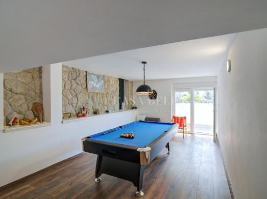 Kuća je izgrađena 2021. godine te je moderno uređena i opremljena kvalitetnim materijalima i opremom, uključujući PVC stolariju, električne rolete u svim prostorijama, kvalitetnu rasvjetu i klima-uređaje. Uređena okućnica površine približno 500 m² nudi potpunu privatnost i sadržaje za uživanje na otvorenom, uključujući bazen sa sunčalištem, otvorenu i natkrivenu terasu s roštiljem, vrt te dva parkirna mjesta, dok su u neposrednom okruženju dostupna dodatna besplatna parking mjesta.