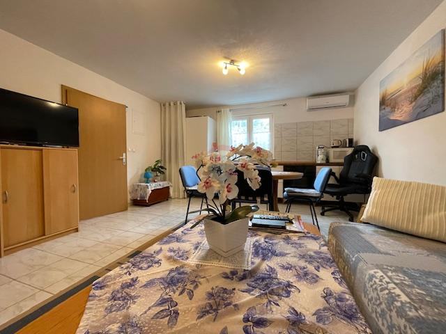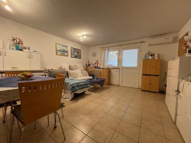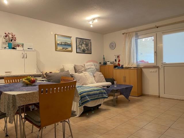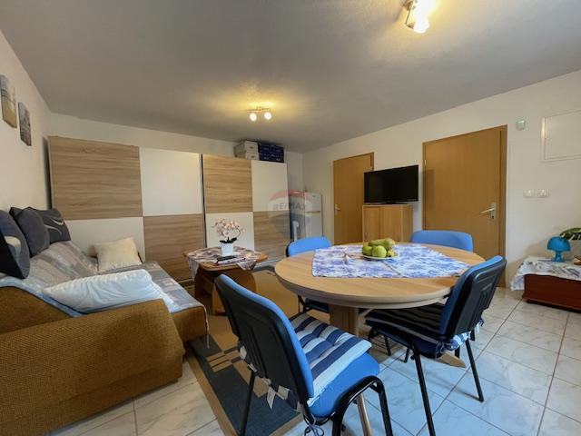 Površina drugog stana je 43 m2,a sastoji se od hodnika,kuhinje,dnevnog boravka,jedne spavaće sobe,kupaonice s toaletom i spremišta.Stanovima pripada i okućnica sa velikom terasom i dva parkirna mjesta.Lokacija je izuzetno mirna,okružena borovom šumom i s pogledom na more što je izuzetno opuštajuće za idiličan odmor ili obiteljski život,kao i turistički najam.