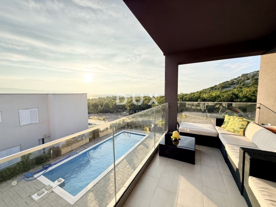 NOVI VINODOLSKI, OKOLICA - moderan stan 2. red do mora s bazenom, parkingom i zajedničkom okućnicom