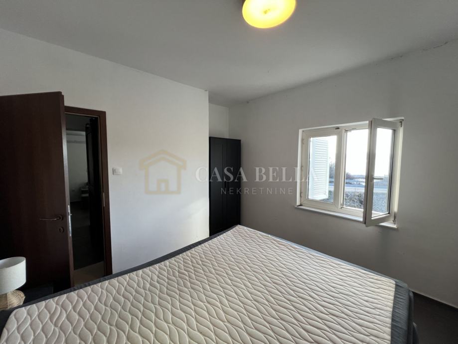 Stan se sastoji od dvije spavaće sobe, dnevnog boravka s kuhinjom, dvije kupaonice i terase s roštiljem. Iz stana se pruža lijepi pogled na more.