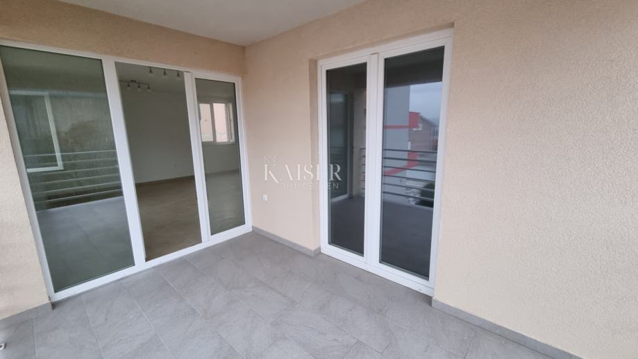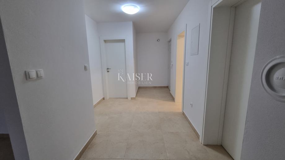 Stan se sastoji od dvije spavaće sobe od koje jedna ima izlaz na prostranu lođu od 10m2 s pogledom na more i izuzetno prostranog dnevnog boravka s kuhinjom i blagovaonicom open-space koncepta koji imaju izlaz na istu terasu, WC-a, kupaonice.
