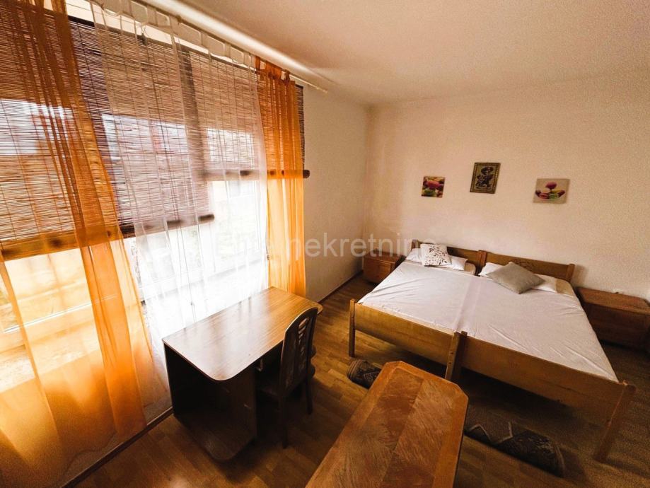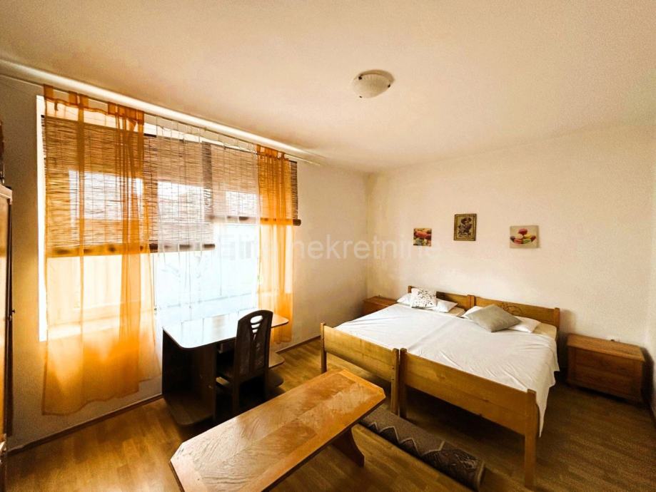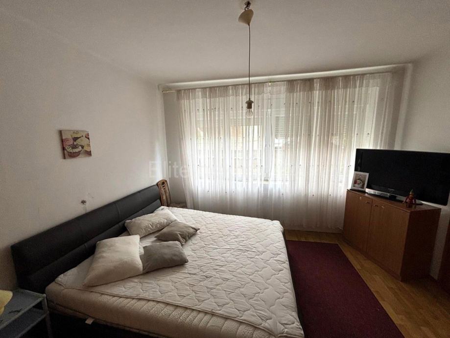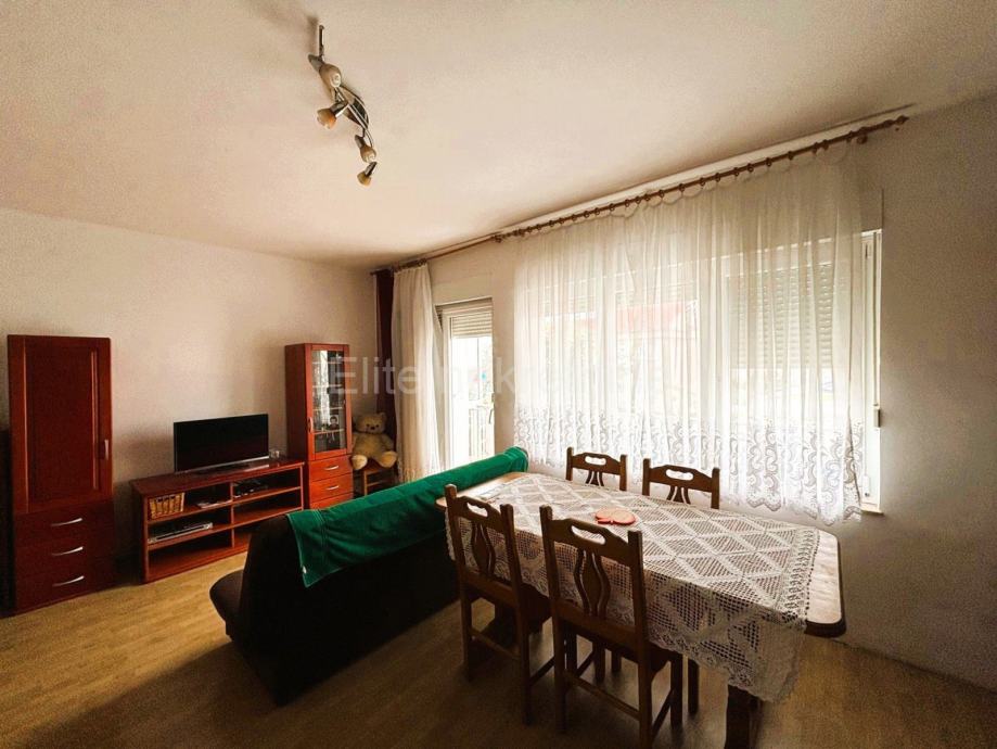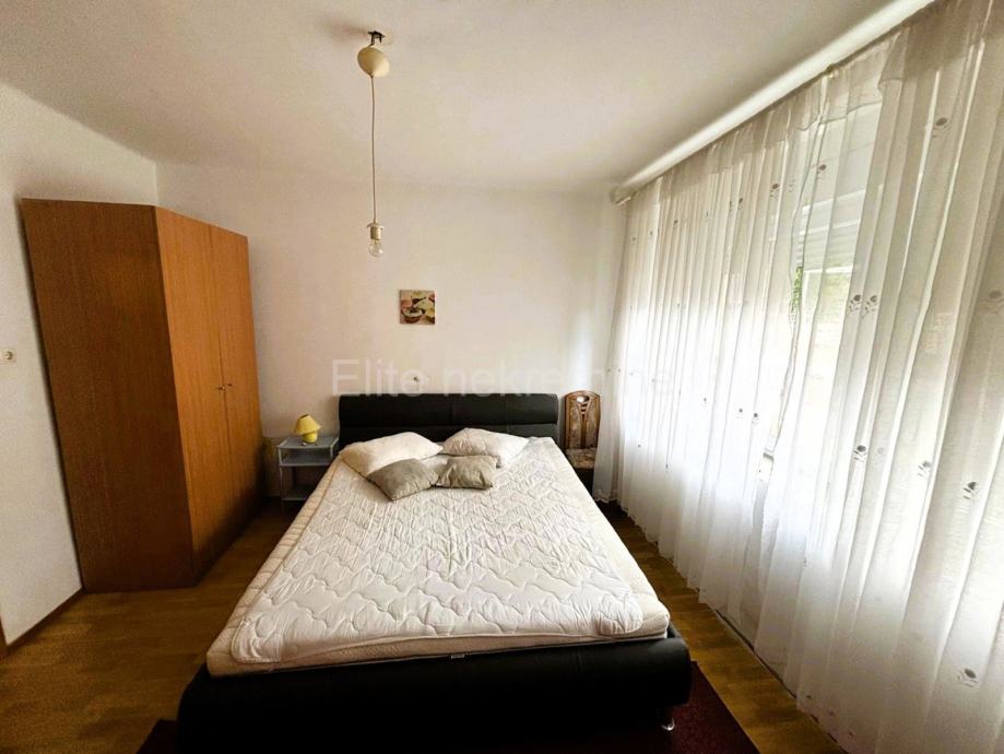 Sastoji se od dnevnog boravka, koji je povezan s kuhinjom i blagovaonicom, stvarajući otvoreni koncept pogodan za druženja i obiteljske trenutke. Veliki prozori osiguravaju obilje prirodnog svjetla, dok balkon nudi dodatni prostor za opuštanje s pogledom na okolinu. Stan raspolaže s dvije komforne spavaće sobe, od kojih svaka pruža dovoljno prostora za smještaj velikog kreveta i ormara, što ga čini idealnim za obitelj ili goste.