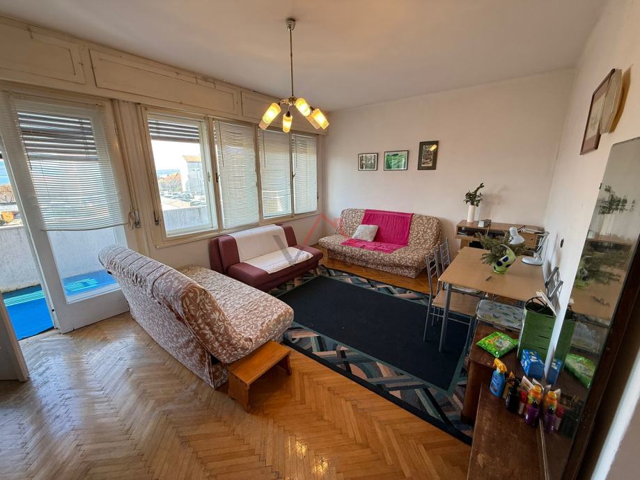 Stan se sastoji od hodnika, kuhinje, izbe, dnevnog boravka, spavaće sobe, kupaonice, WC-a i lođe. Pripada mu jedno parkirno mjesto unutar okućnice objekta, te drvarnica. Iz stana se pruža pogled na more i otok Krk. Stan zahtijeva renovaciju, no pruža mnogo mogućnosti za uređenje prema vlastitim željama radi svoga rasporeda i veće kvadrature.