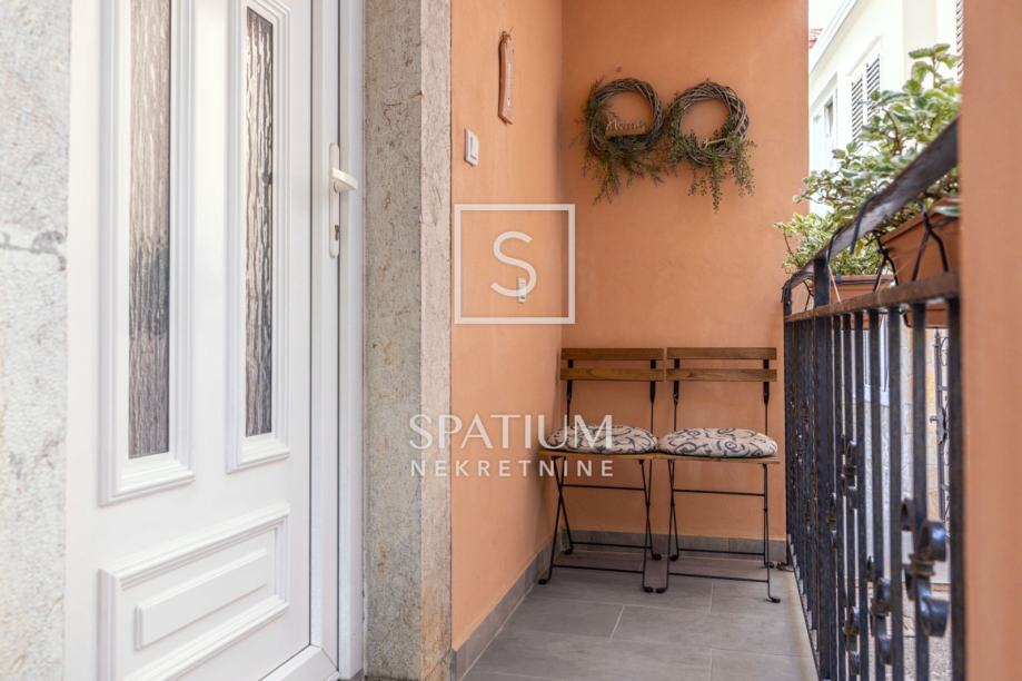 Sastoji se od suterena, prizemlja i kata s terasom. Prizemlje i kat čine dvoetažni stan koji se sastoji od ulaznog hodnika, kuhinje, blagovaonice i dnevnog boravka, kupaonice i toaleta, unutarnjeg stubišta, te dvije spavaće sobe na katu, od koji jedna ima izlaz na terasu. Suteren je uređen kao ljetna kuhinja s dnevnim boravkom, a ima zaseban ulaz tako da ga je moguće urediti kao odvojeni studio apartman. Stambenog prostora 150m2.