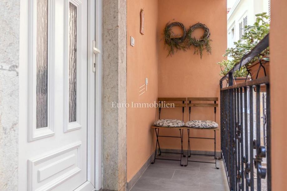 Sastoji se od suterena, prizemlja i kata. Suteren je uređen kao ljetna kuhinja sa dnevnim boravkom te ima zasebni ulaz. Dvoetažni stan se proteže kroz prizemlje i prvi kat. Sastoji se od ulaznog hodnika, kuhinje sa blagovaonom, dnevnog boravka, kupaonice i toaleta. Unutarnjim stepenicama ide se na kat gdje se nalaze dvije spavaće sobe i terasa.