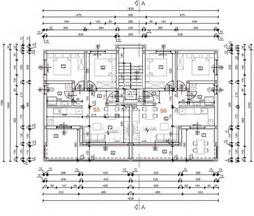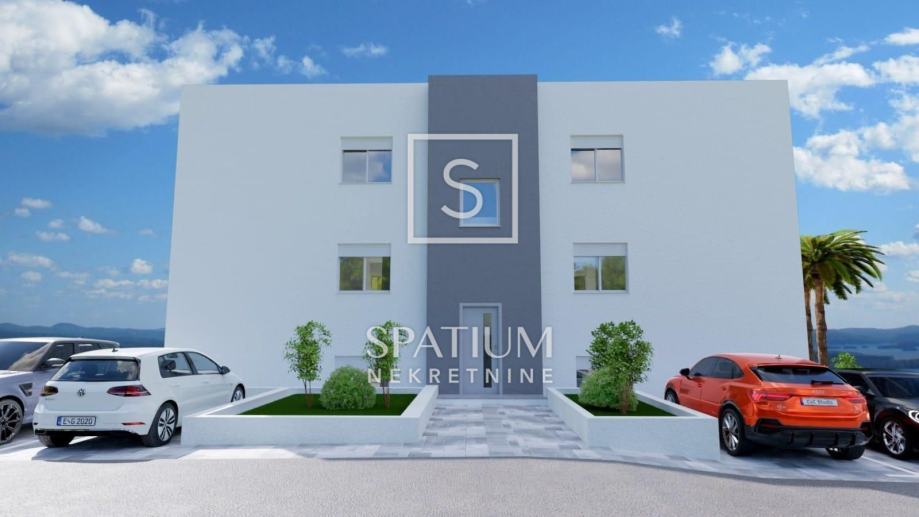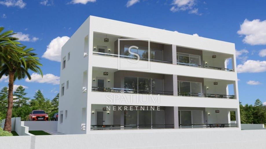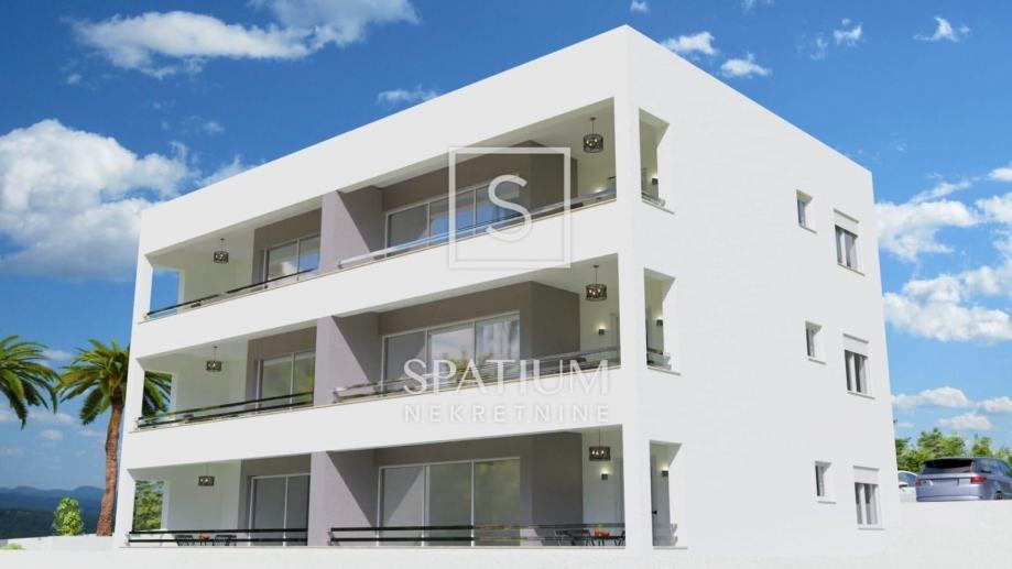 Površine 57,50m2, sastoji se od ulaznog hodnika, kuhinje s blagovaonom, dnevnog boravka, dvije spavaće sobe, kupaone i lođe s lijepim pogledom na more.