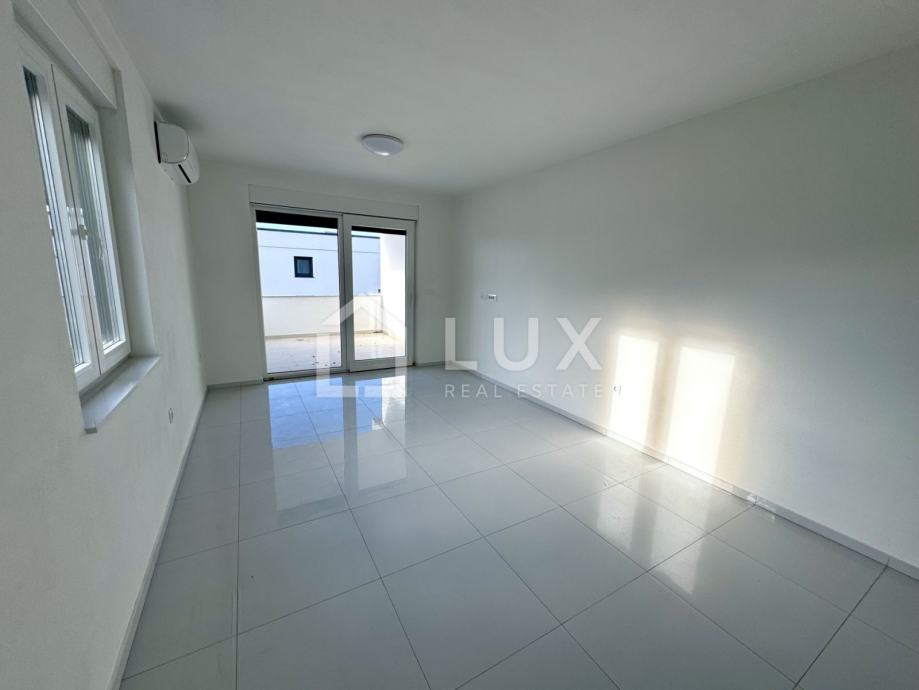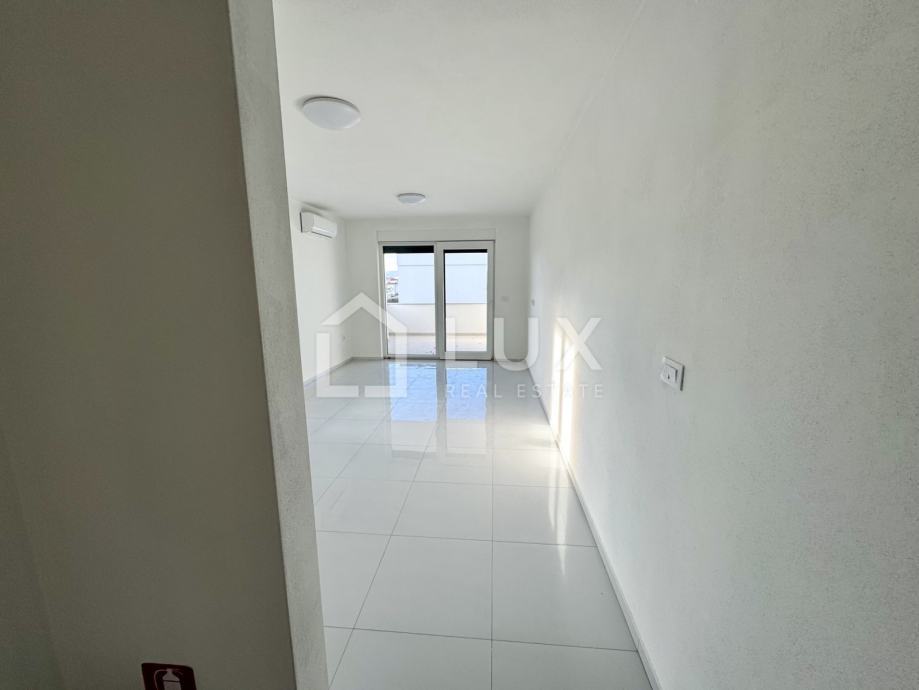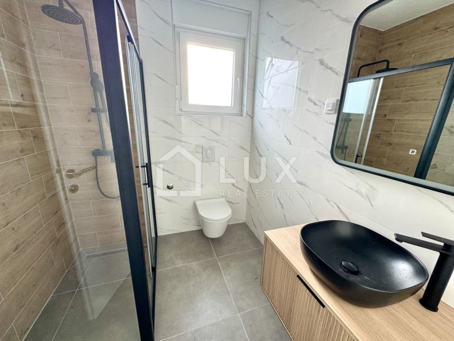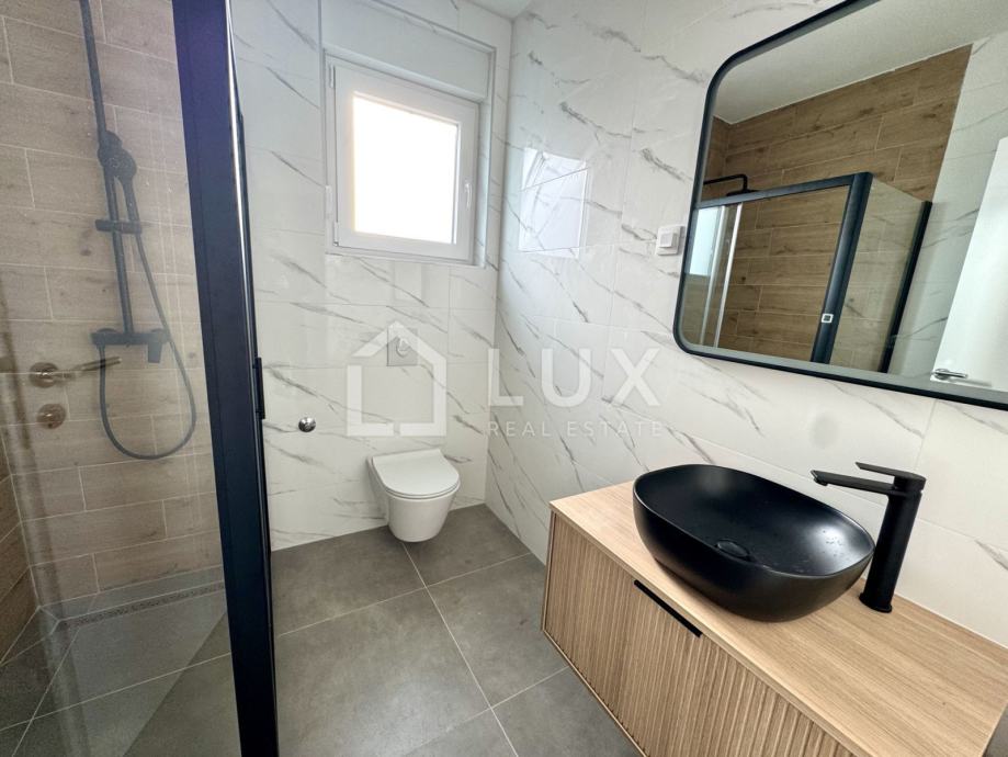 Stan se nalazi na 1. katu manje stambene zgrade a sastoji se od ulaznog hodnika, otvorenog tipa dnevnog boravka sa kuhinjom i blagovaonicom, kupaonice, dvije spavaće sobe, ostave te prostrane loggije s pogledom na more. Stanu također pripada i jedno parkirno mjesto.