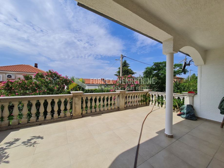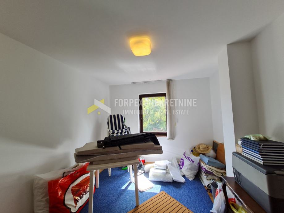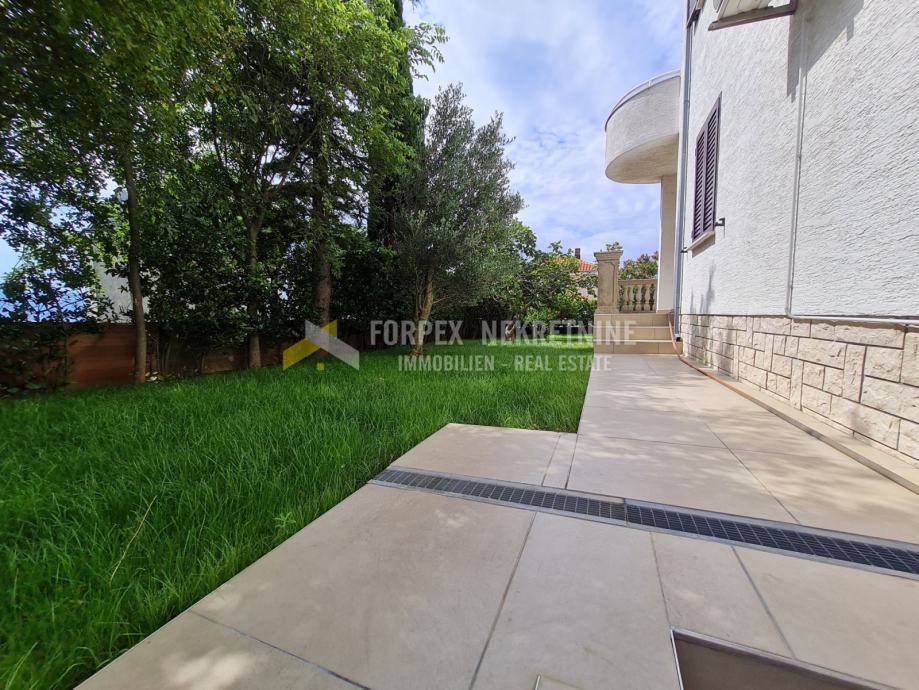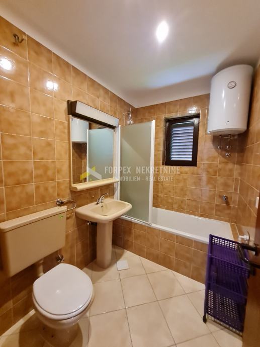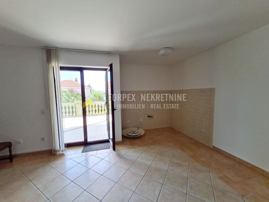 U Novom Vinodolskom na udaljenosti 200 metara od mora prodaje se stan površine 70 m2 sa okućnicom površine 198 m2. Stan se nalazi u prizemlju manje stambene zgarde. Sastoji se od spavaće sobe, kuhinje sa blagavaonom, kupaone, i natkrivene terase. Stanu pripada jedno parkirno mjesto unutar ograđene okućnice. Do plaže je potrebno 5 mminuta laganog hoda, a do centra grada 10-ak minuta.