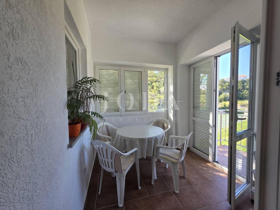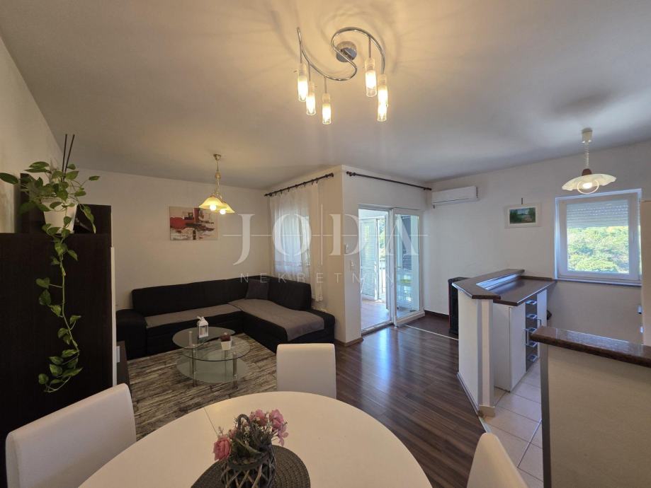 Prodajemo stan na mirnoj i lijepoj lokaciji, ali u blizini svih potrebnih sadržaja. Stan se nalazi na prvom katu stambene zgrade u nedaleko od prve plaže. Sastoji se od kuhinje sa blagovaonom, dnevnog boravka, hodnika, dvije spavaće sobe i loggie. Nekretnina je u poptunosti namještena i klimatizirana te se kao takva i prodaje. Idelana je za odmor i uživanje, ali i za cjelogodnišni boravak.