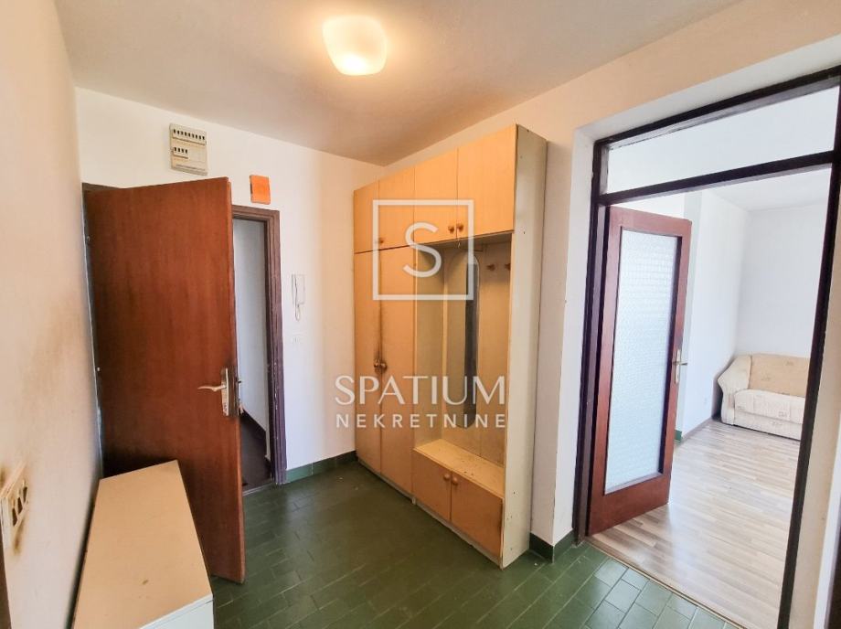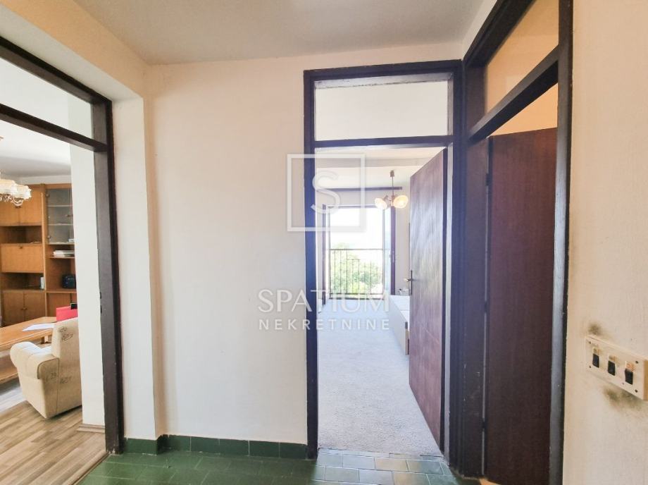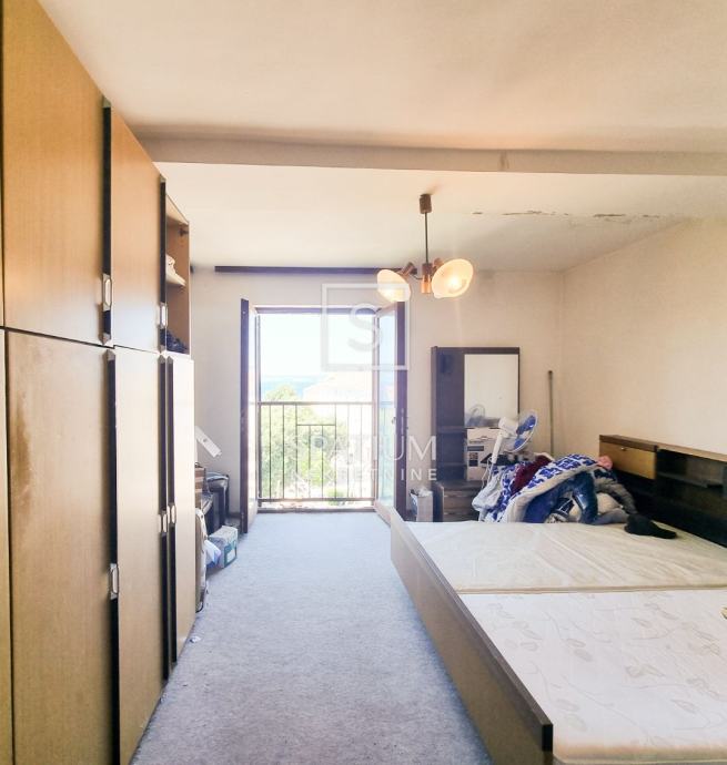 Stan se sastoji od predsoblja, kupaonice i toaleta, spavaće sobe s francuskim balkonom, kuhinje s blagovaonicom, te dnevnog boravka s izlazom na balkon s kojeg se pruža prekrasan pogled na grad i more. Klimatiziran, s namještajem ili bez, prodaje se u kompletu s drvarnicom (spremištem).