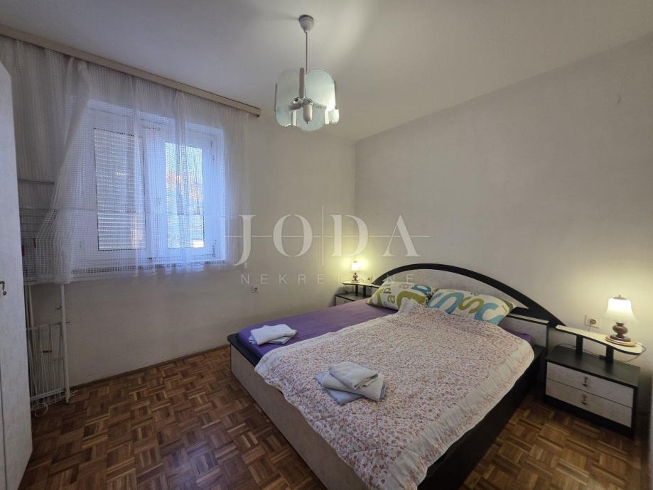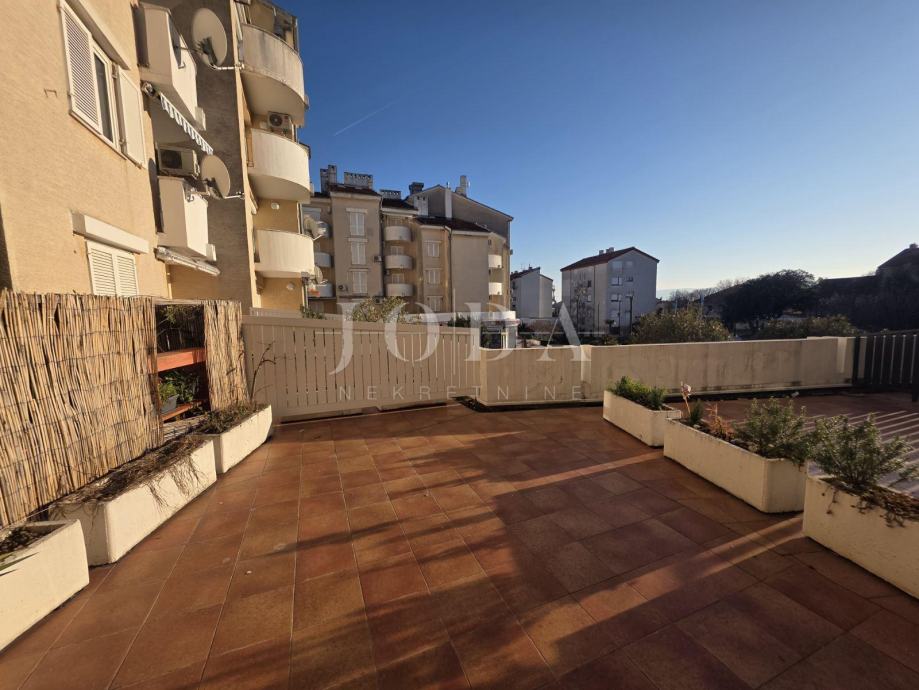 Prodajemo stan na prvom katu stambene zgrade u samo centru grada. Stan se sastoji od kuhinje sa dnevnim boravkom, ulaznog hodnika, spavaće sobe i kupaone ukupne površine 43,70m2. Stanu pripada terasa od 21,21m2, savršen prostor za uživanje i opuštanje. Spremište se nalazi u potkrovlju zgrade. Lokacija stana omogućava nam lagan pristup svim potrebnim sadržajima. Javni parking nalazi se u blizini zgrade te se nudi mogućnost kupnje povlašetene karte po nižoj cijeni. Nekretnina za odmor i uživanje, ali i za boravak preko cijle godine.