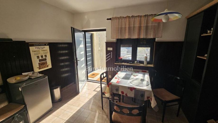 Druga garsonjera sa spremištem i natkrivenom terasom se nalazi u prizemlju kuće ukupne površine 16m2.Ova nekretnina sastoji se od tri odvojena stambena objekta, što je čini idealnim izborom za cjelogodišnje stanovanje, obiteljski život ili kao investiciju za turistički najam.