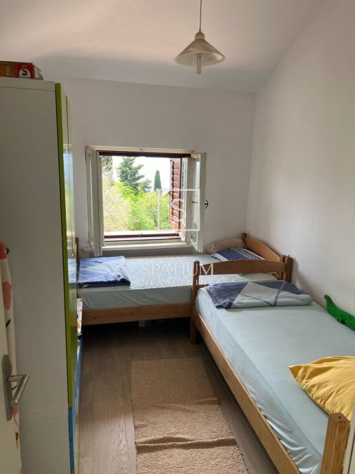 Sastoji se od tri spavaće sobe, kupaonice i toaleta, kuhinje, blagovaonice i dnevnog boravka, te velikog balkona s prekrasnim pogledom na more i obalu.