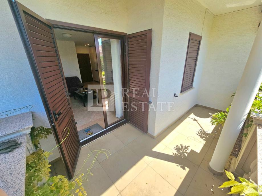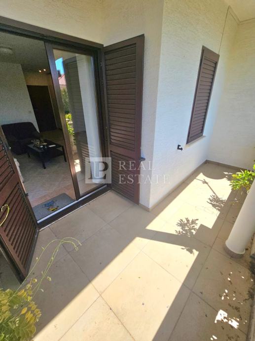 Stan se sastoji od dnevnog boravka, kuhinje, blagovaonice, kupaonice i terase. Iz dnevnog boravka se izlazi na natkrivenu terasu. Ispred terase se nalazi vrt od 60 m2 koji je u vlasništvu samo ovog stana.