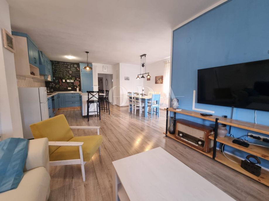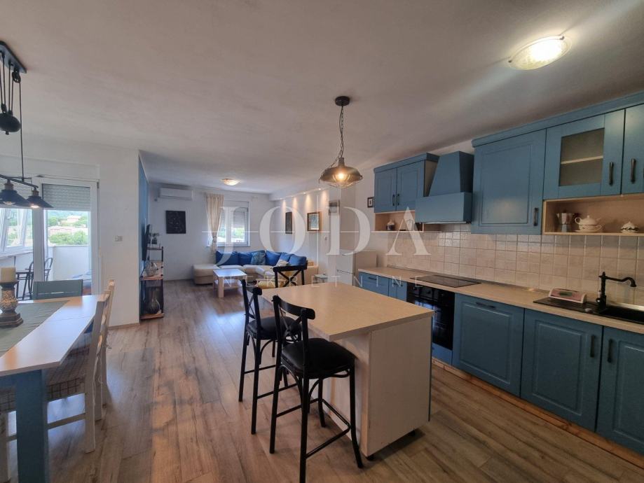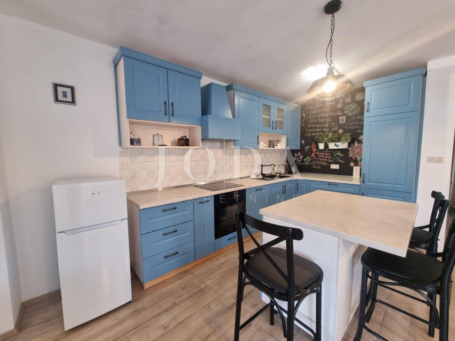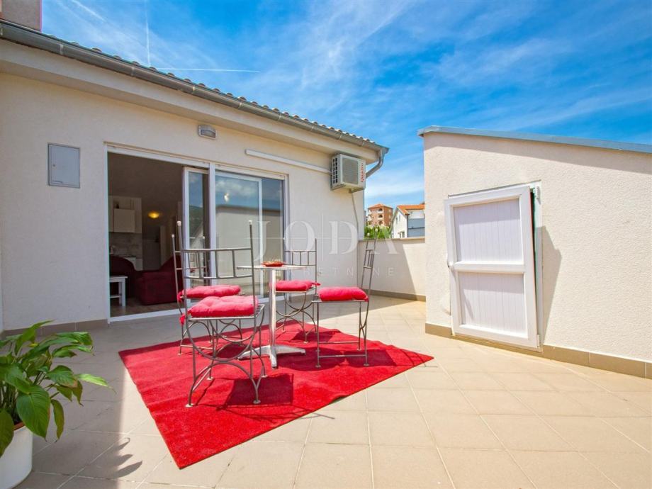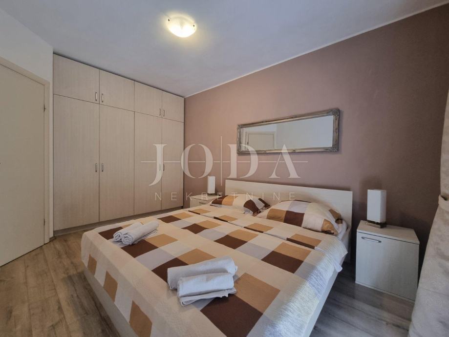 Prodajemo dva stana ukupne površine od 131m2. Na drugom katu manje stambene zgrade nalazi se prostrani stan od 81m2. Sastoji se od dvije spavaće sobe, kuhinje sa blagovaonom, dnevnog boravka, dva balkona.. Stan u potkrovlju sastoji se od jedne spavaće sobe, kuhinje, dnevnog boravka, kupaone, ostave i lijepe krovne terase. Oba stana su u potpunosti namješteni i klimatizirani i kao takvi se i prodaju. Stanovi su u uhodanom turističkom najmu. Nekretnina za boravak i preko cijele godine.