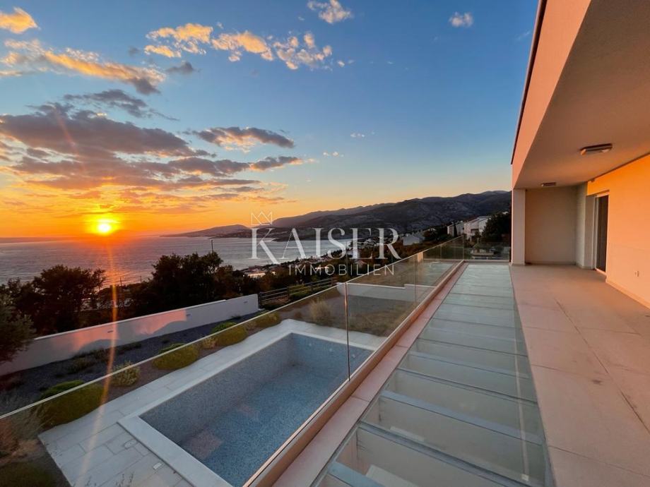 Kaiser Immobilien stavlja na tržište luxuznu modernu villu sa bazenom i prekrasnim pogledom. Villa se nalazi u prekrasnom manjem mjestu u blizini Novog Vinodolskog i sastoji se od suterena, prizemlja i prvog kata, te je u fazi uređenja inerijera i postavljanja kompletno novog namještaja. Nekretnina ima prekrasnu okućnicu i bazen natkriveno parkirno mjesto i dva nenatkrivena, stojarnicu, vrt te vam pruža jedinstveni pogled na more, sve kao na dlanu. Cijela rivijera Novi Vinodolski spoj je izvanrednog povijesnog i kulturnog naslijeđa, te lijepe prirode. Turistima je regija privlačna zbog odlične klime, brojnih plaža povezanih šetalištima, ugodnog šumovitog okruženja kao i specifičnosti mješanja čistog morskog zraka i onog koji dolazi iz planinskog zaleđa. Udaljenost od Crikvenice 14 km, aerodrom Krk 38 km, Rijeka 50 km.
