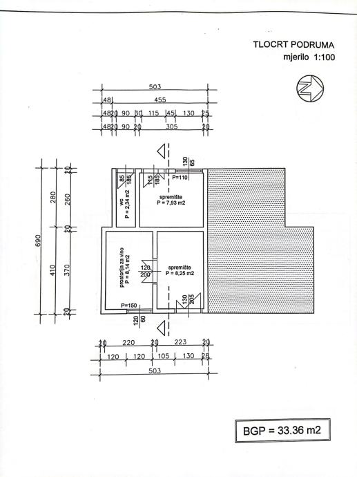 Podrum: 33,36 m2 BGP (vidi nacrt i slike)