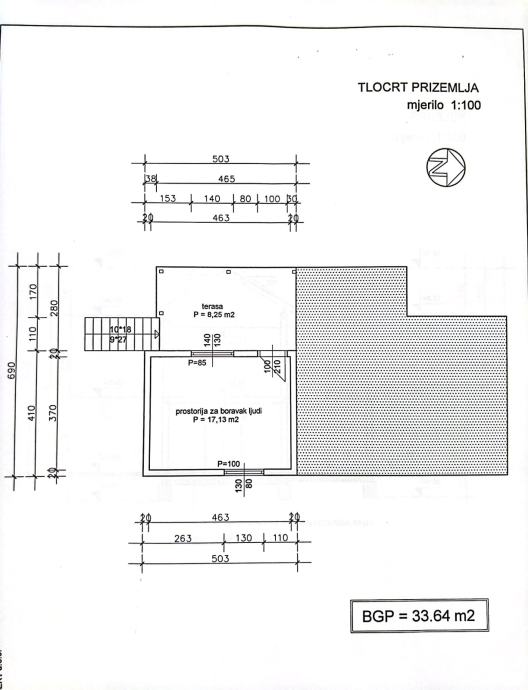 Prizemlje: 33,64 m2 BGP (vidi nacrt i slike)