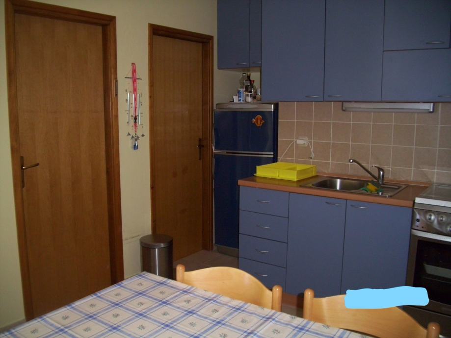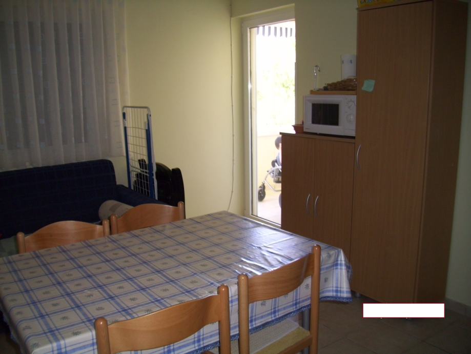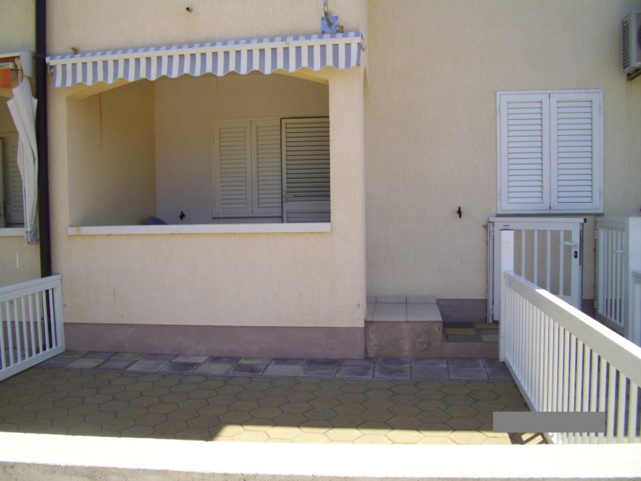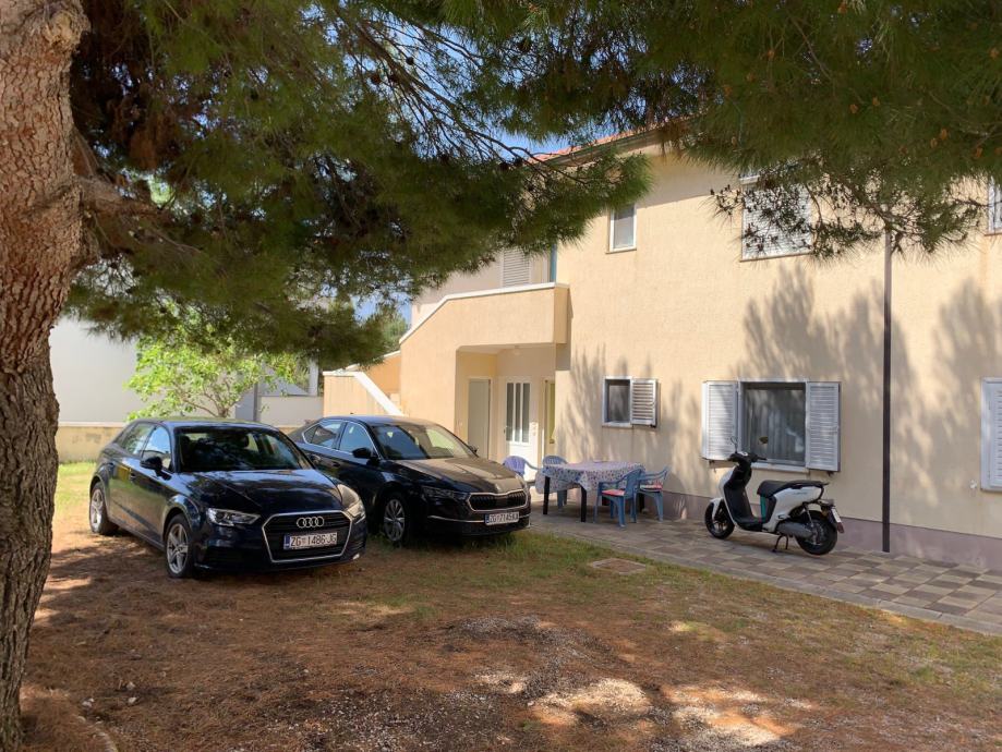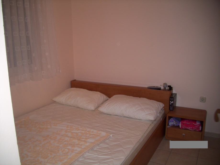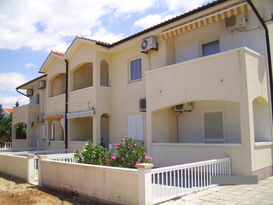 Trosobni apartman u prizemlju koji se sastoji od dnevnog boravka sa kuhinjom, dvije spavaće sobe, predsoblja, kupaonice i lođe. Vlasnik apartmana dobiva u posjed i uređenu terasu-sunčalište ispred apartmana cca 18 m2, ograđenu, kao i komforno parkirno mjesto. Apartman je potpuno namješten te ima ugrađenu kuhinju sa štednjakom, hladnjak sa ledenicom, perilicu rublja, klima uređaj Panasonic i 2 televizora. Udaljenost od mora je stvarnih 250 m. Svi papiri su uredni, vlasništvo 1/1.