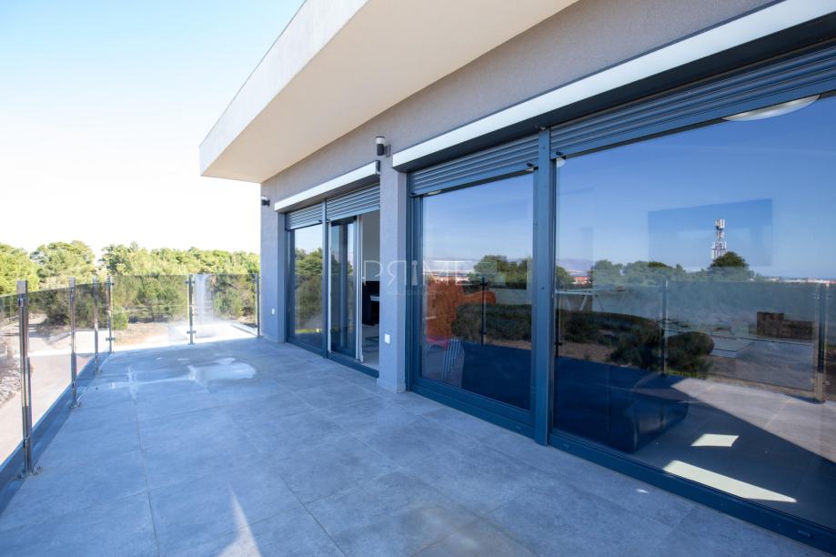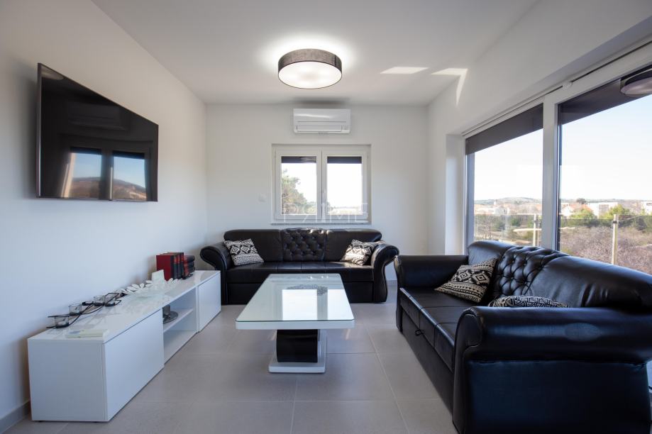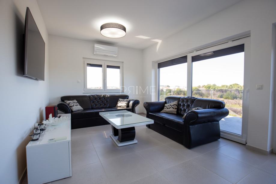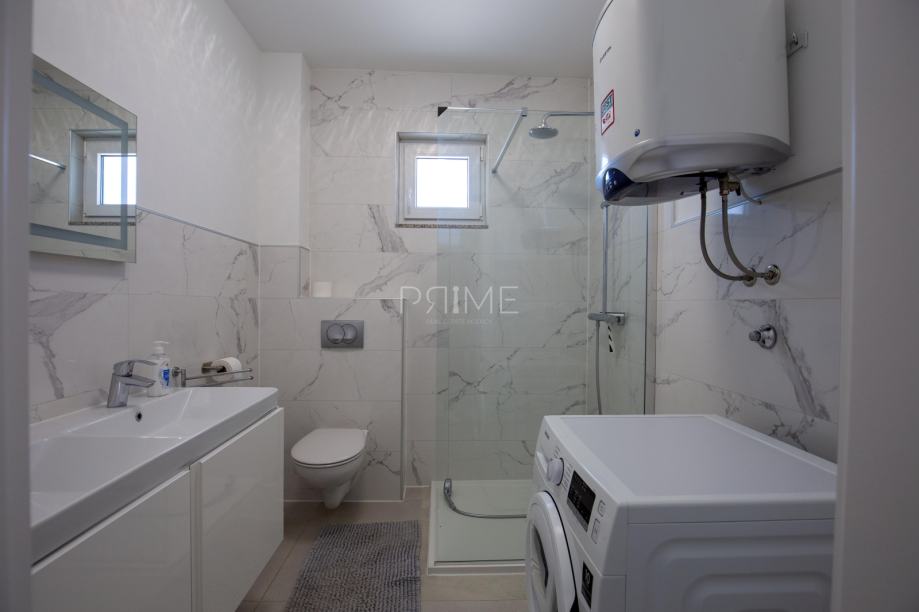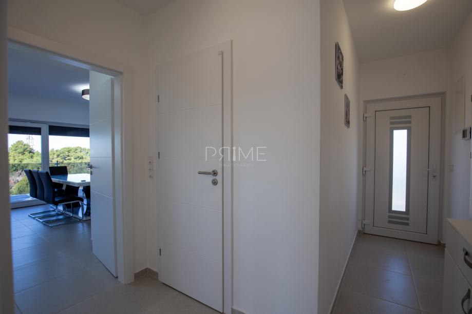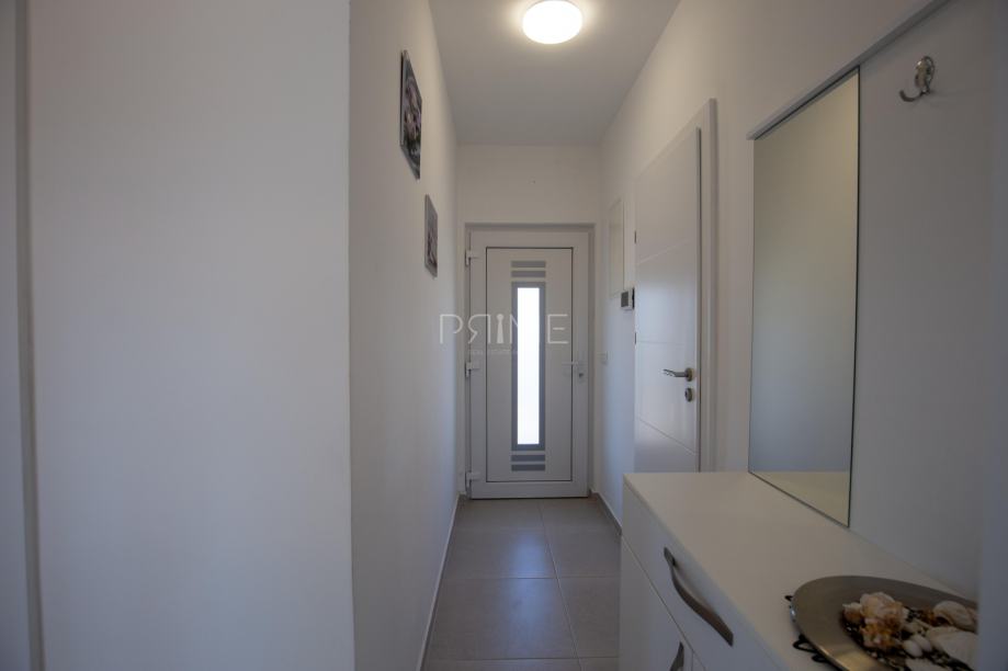 Stan površine 86 m2 sastoji se od kuhinje, blagovaone, dnevnog boravka, kupaone, tri spavaće sobe, hodnika i natkrivene terase. Pripadci stanu su dva vanjska parkirna mjesta. Stan se prodaje kompletno namješten i opremljen kao na slikama. Nalazi se na mirnoj lokaciji u blizini centra mjesta, udaljenost od mora je nekih 500 metara. Zgrada se sastoji od 4 stambene jedinice. Više informacija na upit!