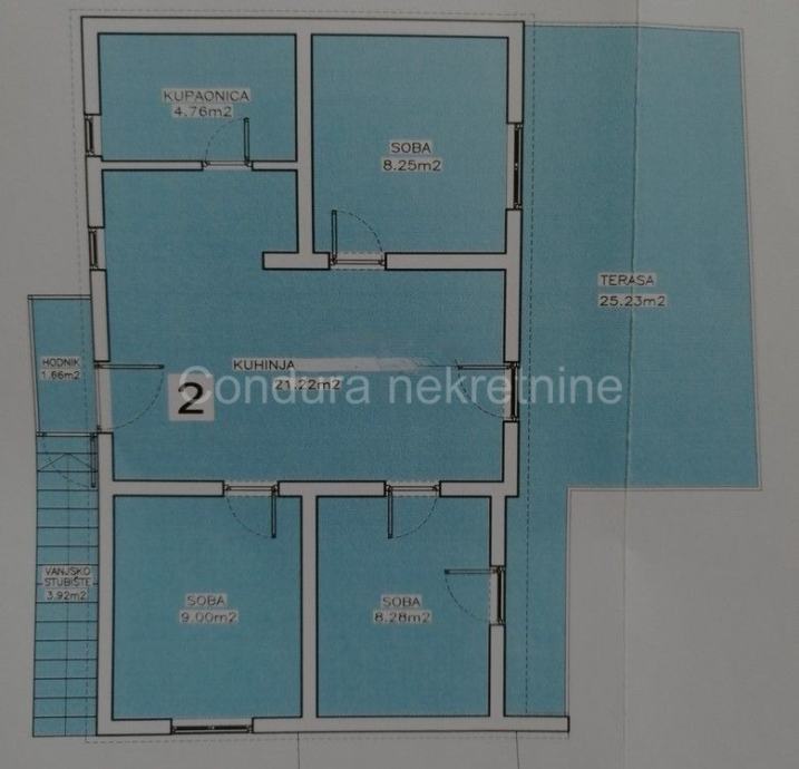 Uz to, ima i sporedni dio koji uključuje stubište i terasu od 29,24 m².