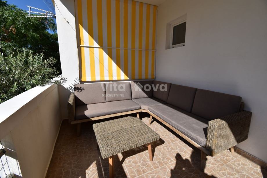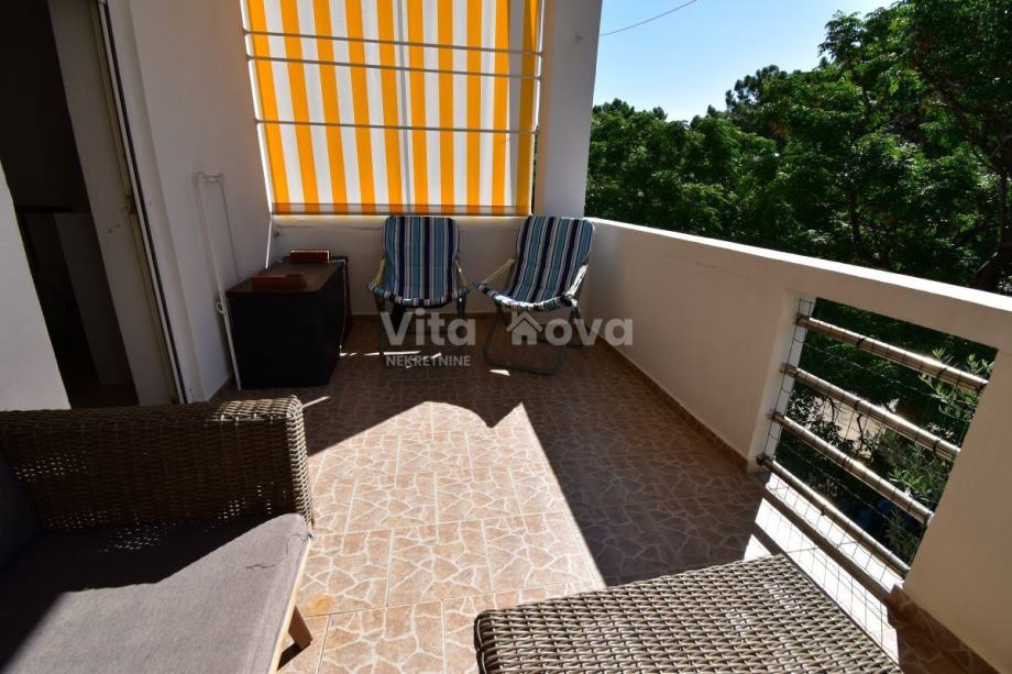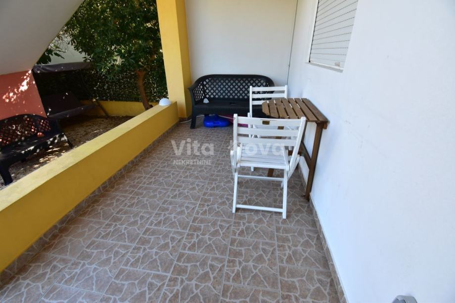Prodaje se atraktivan apartman površine 50 m2, u mirnom dijelu naselja, na prvom katu manje zgrade na Viru. Sastoji se od spavaće sobe, prostranog dnevnog boravka, kuhinje, kupaonice, balkona i terase. Ima svoje parkirno mjesto.