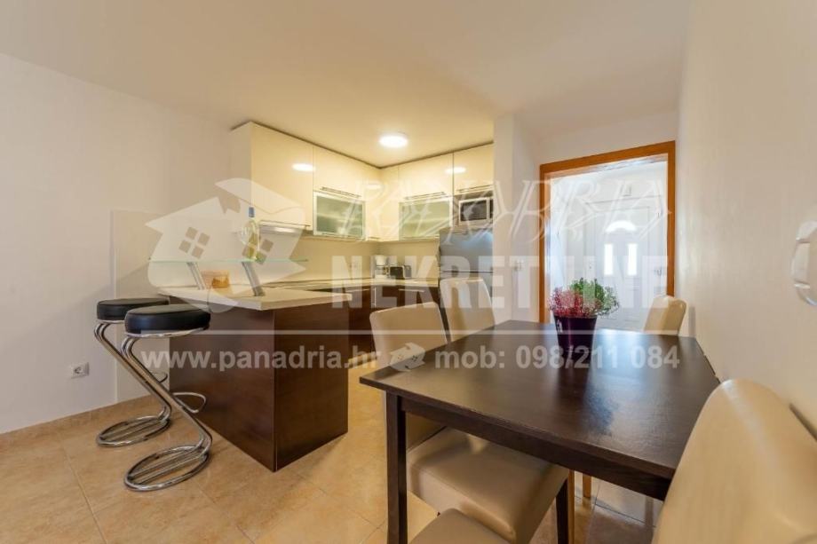 Sastoji se od kuhinje s blagovaonicom, dnevnog boravka, dvije spavaće sobe, kuaponice terase, ostave, te mu pripada dio dvorišta s roštiljem i parkirno mjesto.
