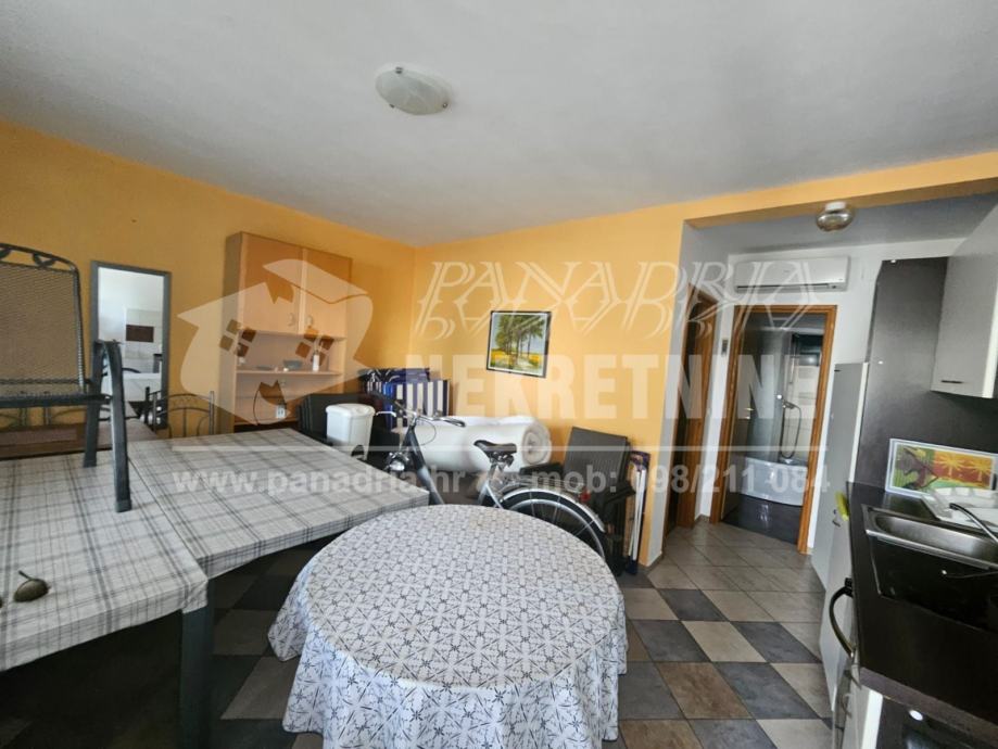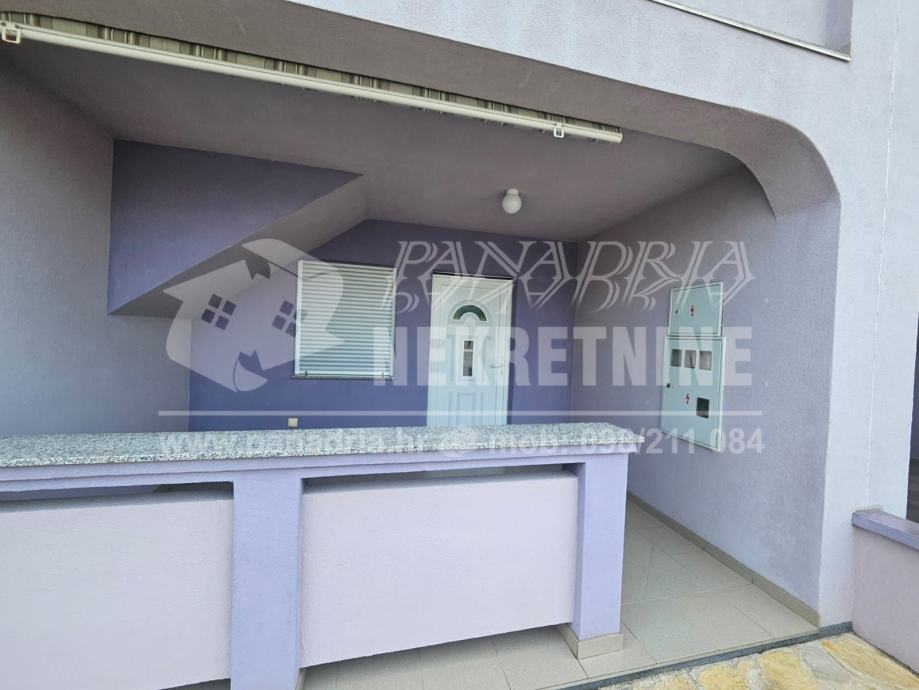 Apartman se nalazi u prizemlju stambene zgrade, sa četiri stambene jedninice, sastoji se od kuhinje s blagovaonicom, dnevnog boravka,spavaće sobe, kuaponice, terase te pripadajućeg parkirnog mjesta.