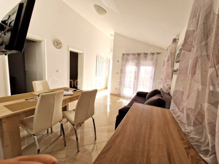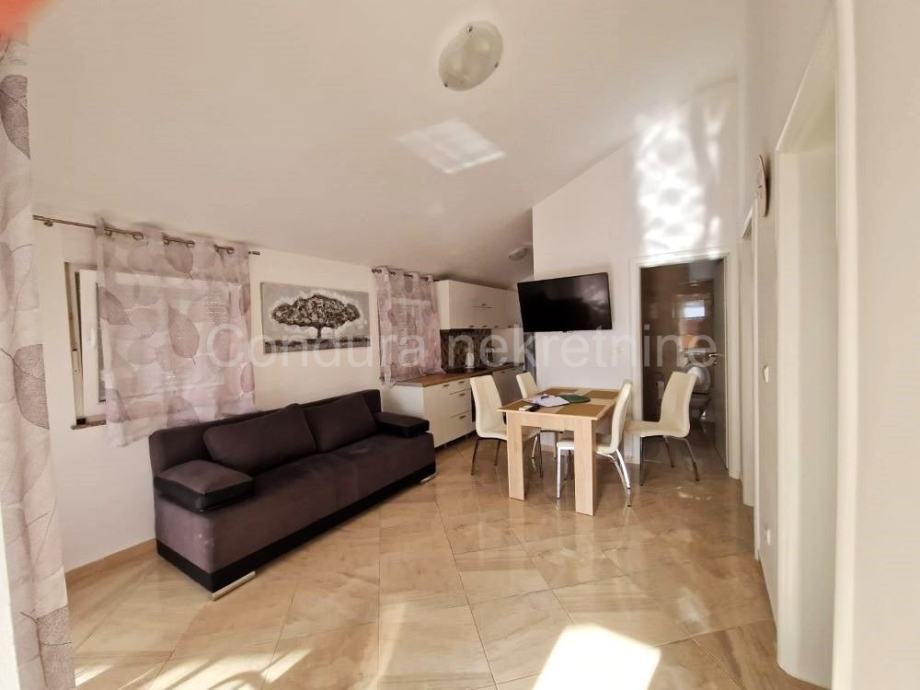 Apartman je potpuno i moderno namješten i takav se i prodaje. Predivan pogled na more pruža se s terase apartmana.