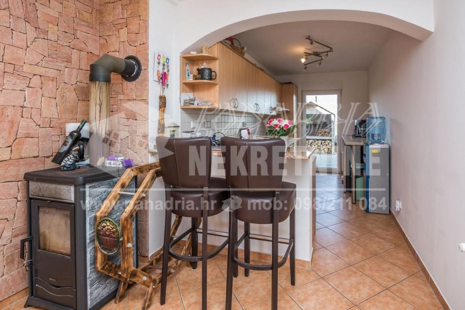 Kuća je potpuno opremljena i namještena, centralno grijanje, spojena je na vodovodnu i kanalizacijsku mrežu.