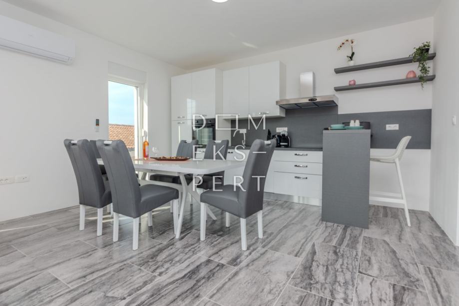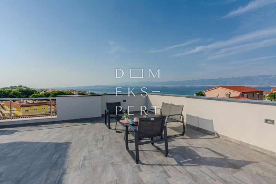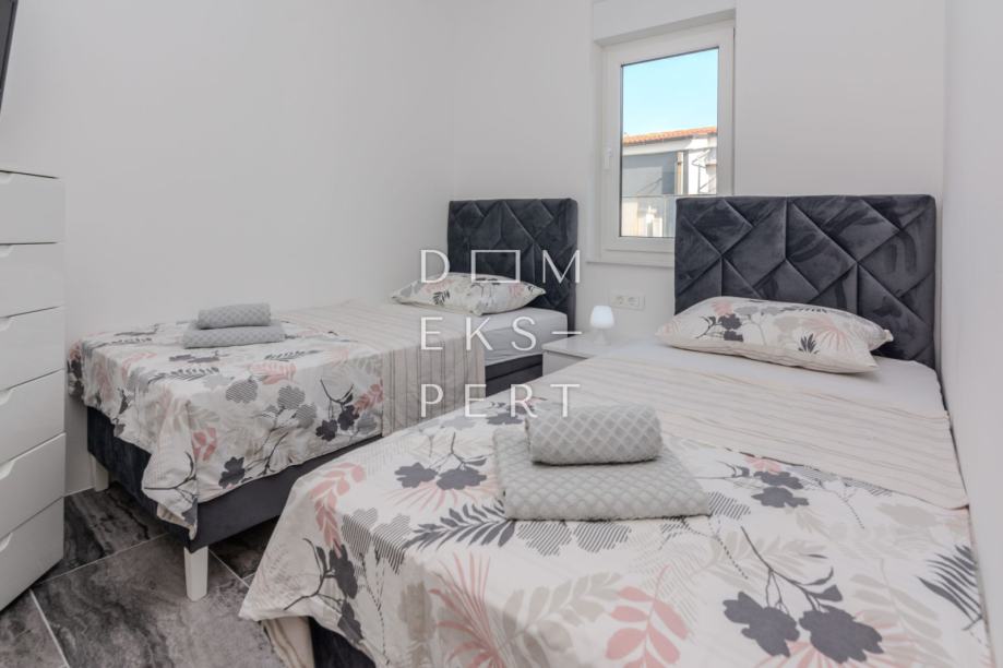 Prodaje se potpuno uređen, četverosobni apartman s velikom krovnom terasom i osiguranim parking mjestom.