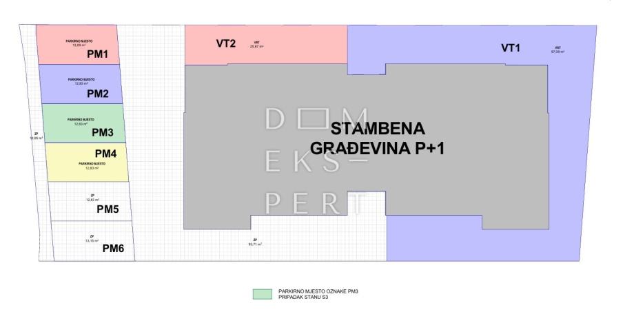 Stan se nalazi u manjoj stambenoj zgradi koja je izgrađena 2023. godine, a sastoji se od prizemlja i kata.