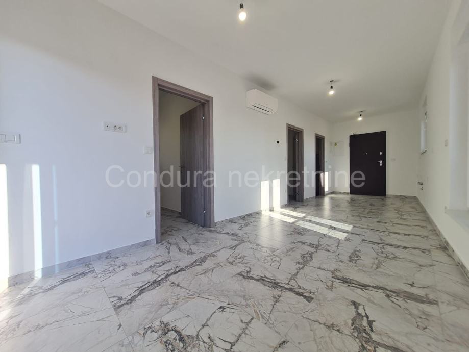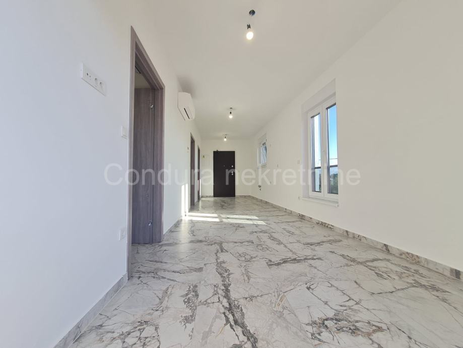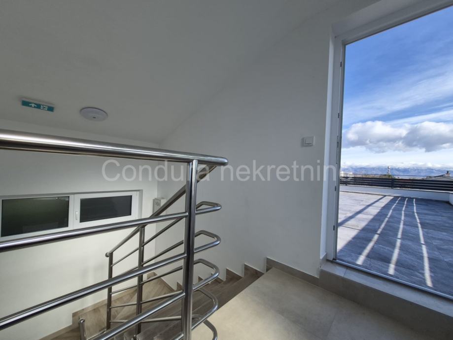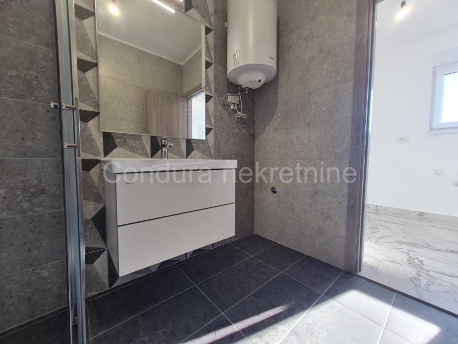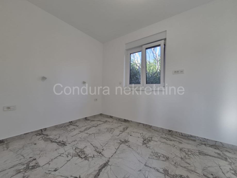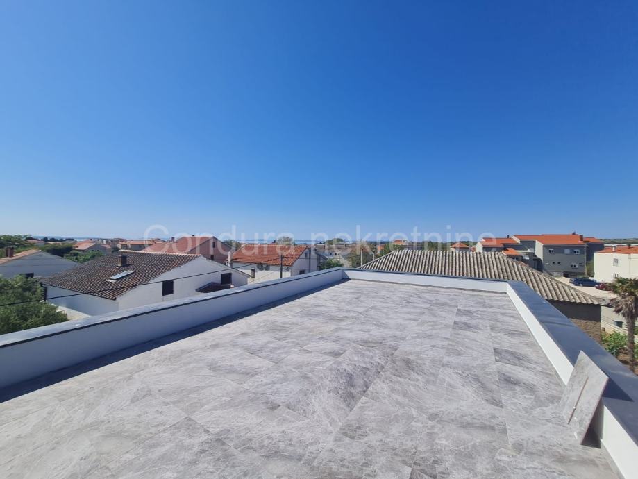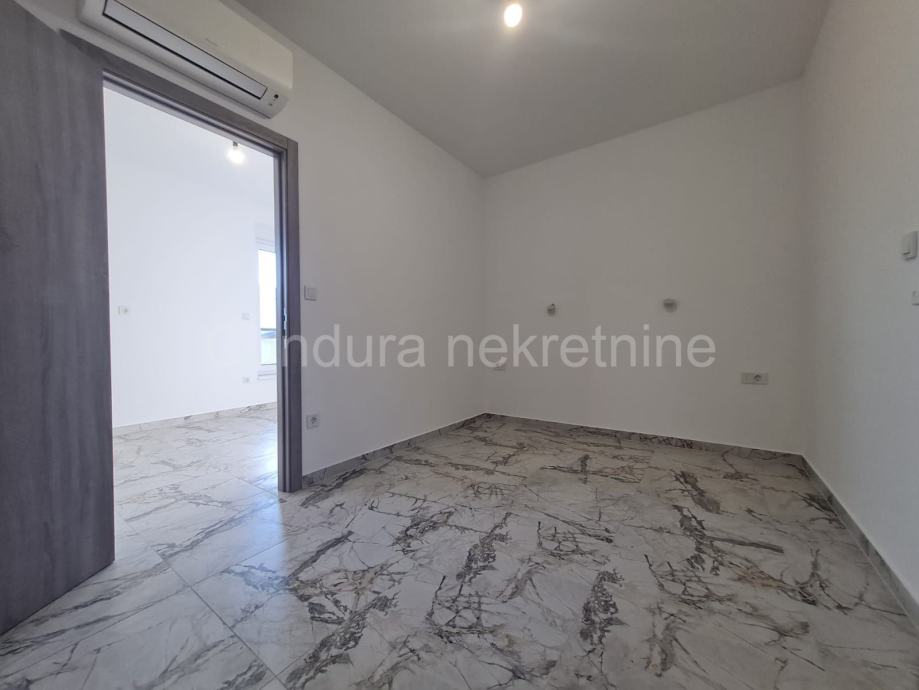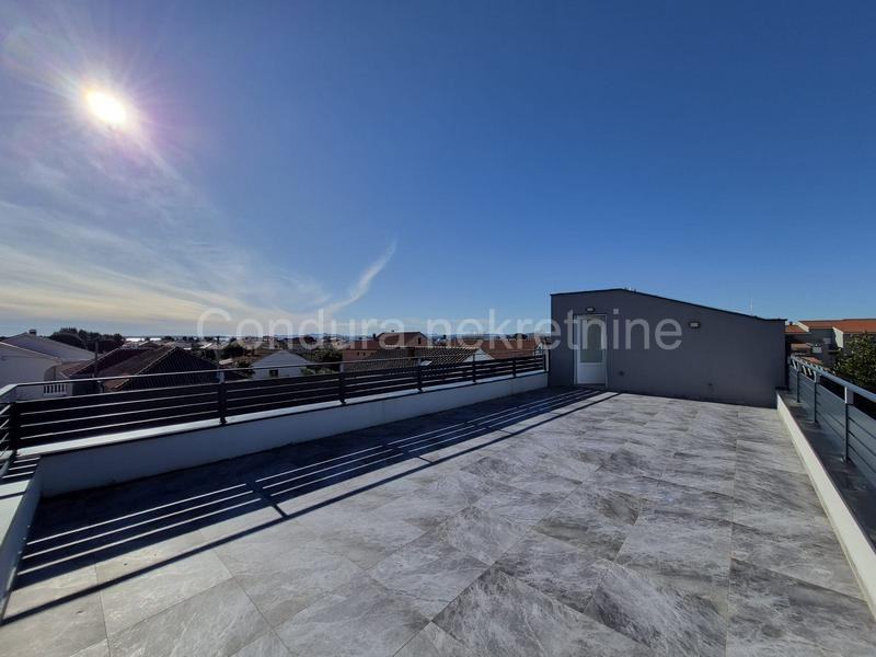 Apartmana ima neto korisnu površinu 69,33 m2 te se sastoji od dvije spavaće sobe, kupaonice, dnevnog boravka s kuhinjom i terase. Pripada mu i prostrana krovna terasa površine 54 m2 s pogledom na more te jedno parkirno mjesto.
