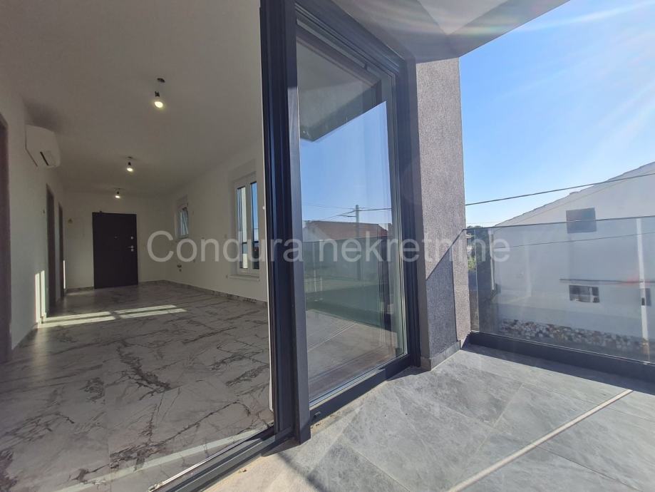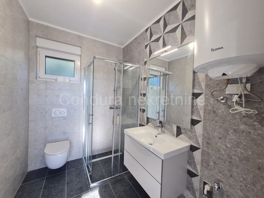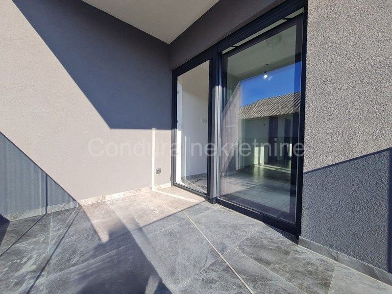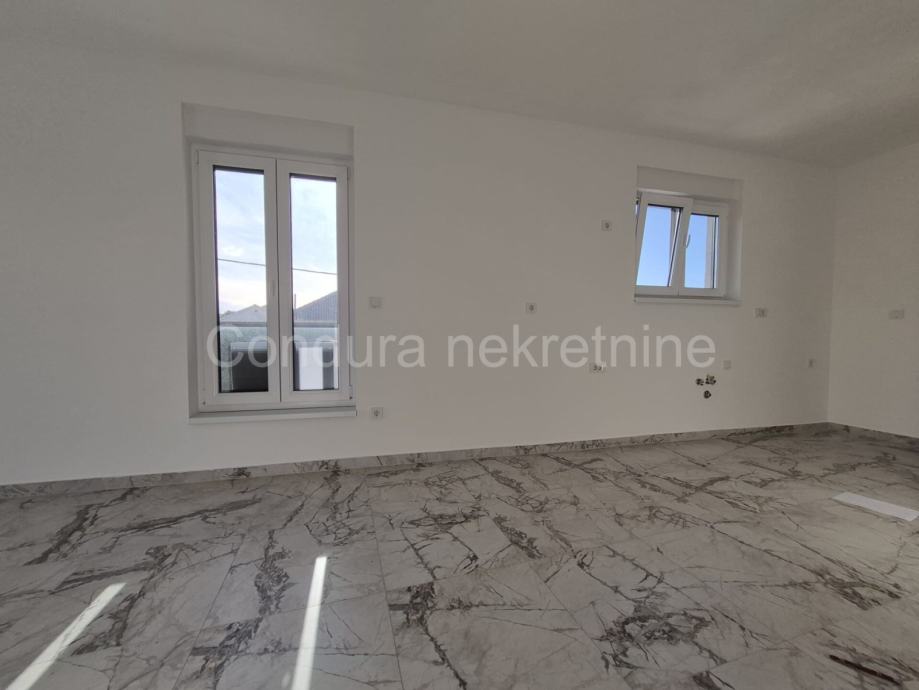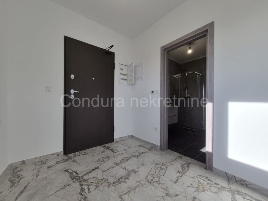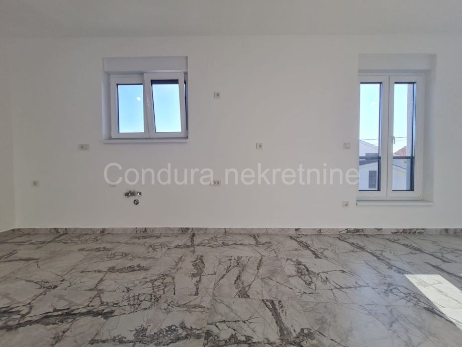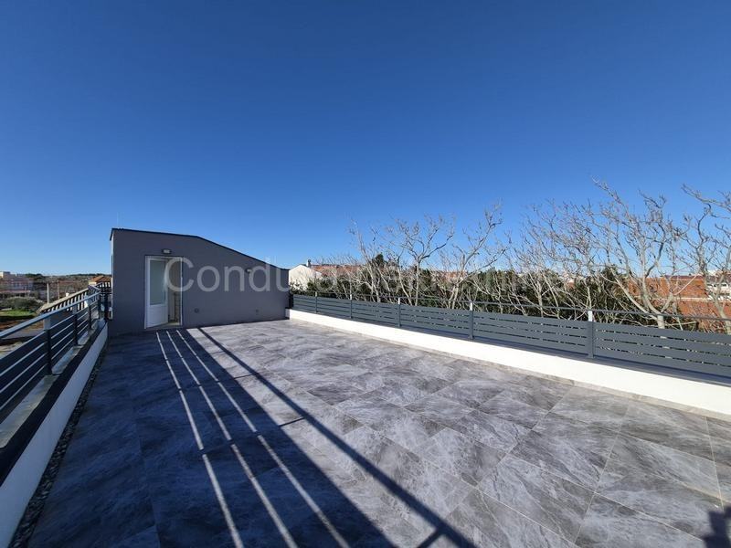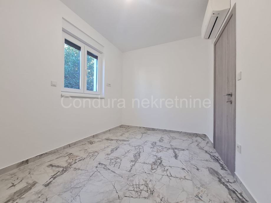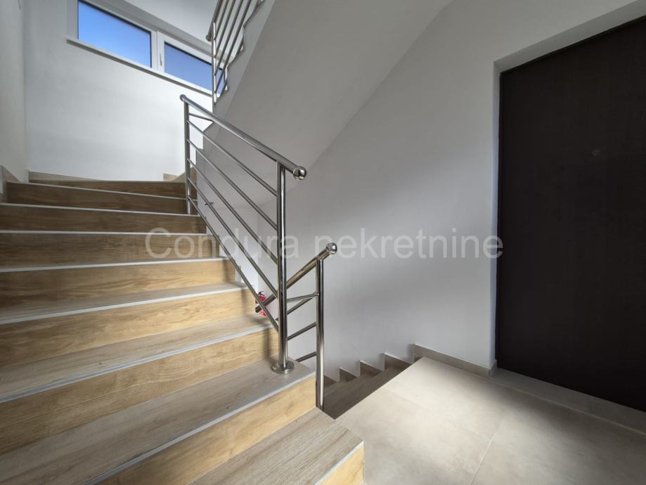 Apartmana ima neto korisnu površinu 69,33 m2 te se sastoji od dvije spavaće sobe, kupaonice, dnevnog boravka s kuhinjom i terase. Pripada mu i prostrana krovna terasa površine 54 m2 s pogledom na more te jedno parkirno mjesto.