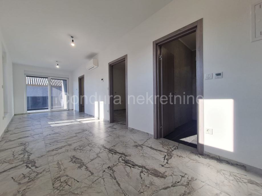 Prodaje se apartman na prvom katu zgrade s ukupno četiri stambene jedinice. Objekt je smješten u strogom centru Vira stoga su u neposrednoj blizini svi sadržaji potrebni za ugodan boravak. Glavna plaža Jadro udaljena je svega 650 m.