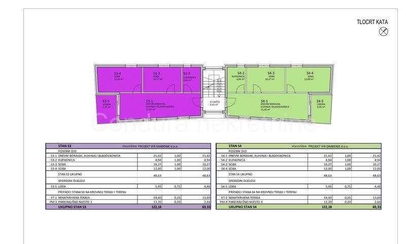 Na priloženom tlocrtu apartman je obojan ljubičastom bojom i označen oznakom S4.