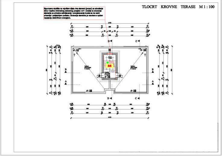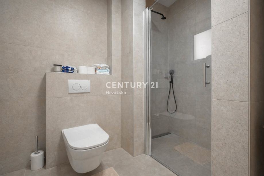 Posebnu vrijednost stanu daje krovna terasa površine približno 50 m2 s otvorenim pogledom na more. Pogled na more ima i terasa uz dnevni boravak. Stan ima još dvije terase manjih površina.