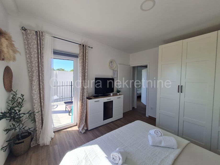 Na prodaju moderna dvojna kuća površine 88 m², izgrađena 2021. godine na zemljištu veličine 255 m². Kuća se sastoji od prizemlja i kata te je opremljena za ugodan život ili turistički najam.