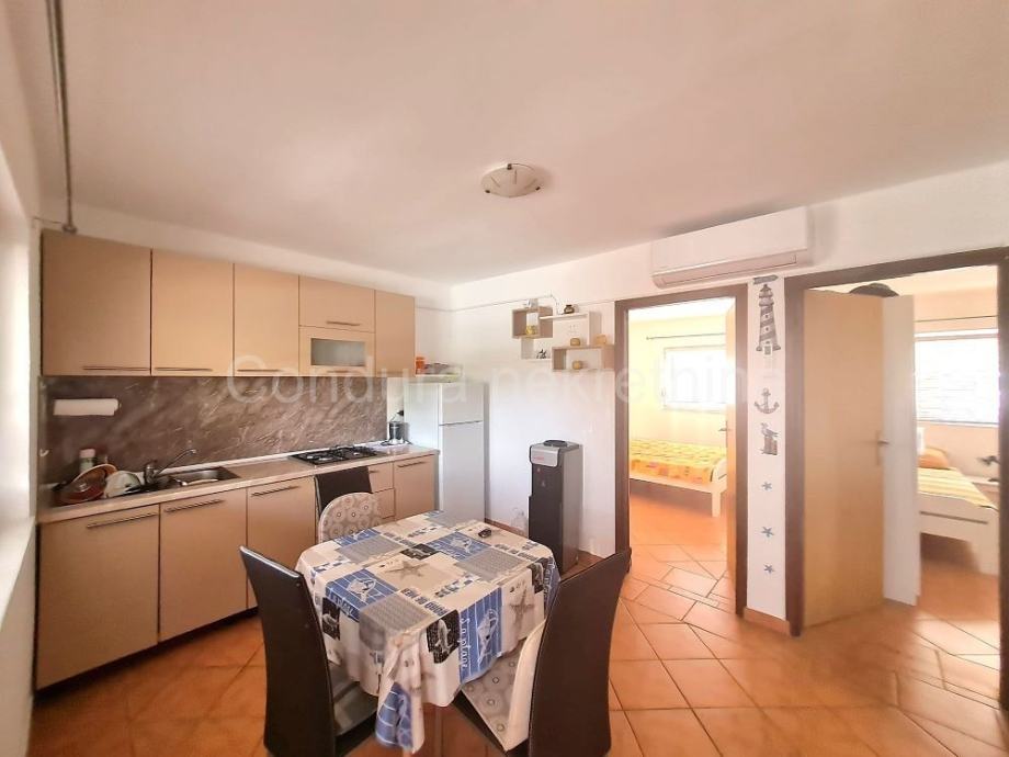 Vrlo ugodan i komforan apartman s vanjskom natkrivenom terasom koja gleda na more sastoji se i od 2 spavaće sobe, kuhinje s dnevnim boravkom i blagavaonicom te kupaonicom.
