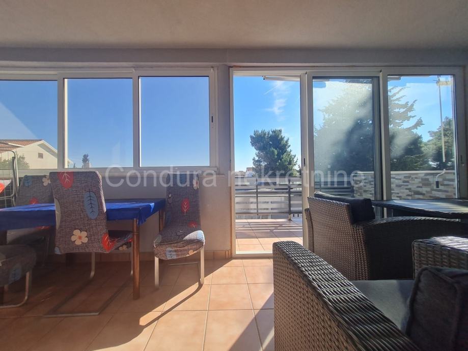 Prodaje se apartman površine 48,49 m2 koji se nalazi na prvom katu manje dvojne zgrade na mirnoj lokaciji, okruženoj zelenilom i borovima a svega 400 m od mora i prve plaže.