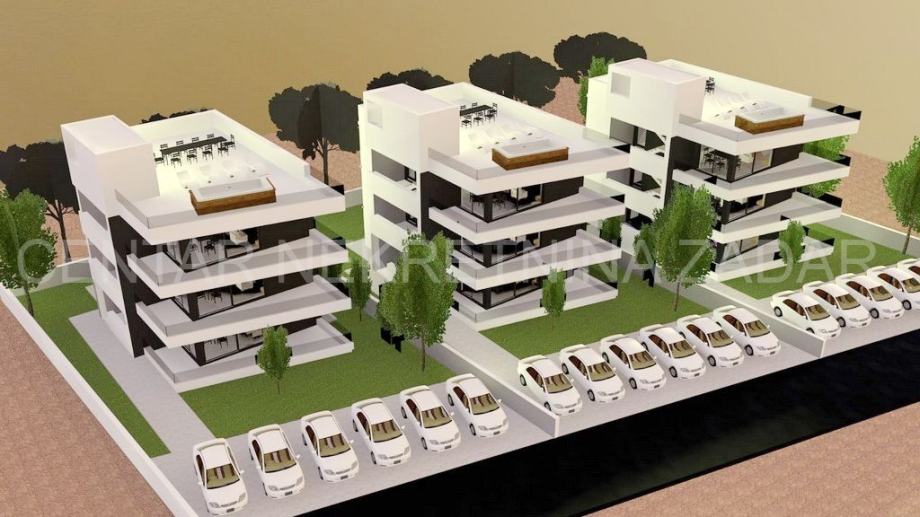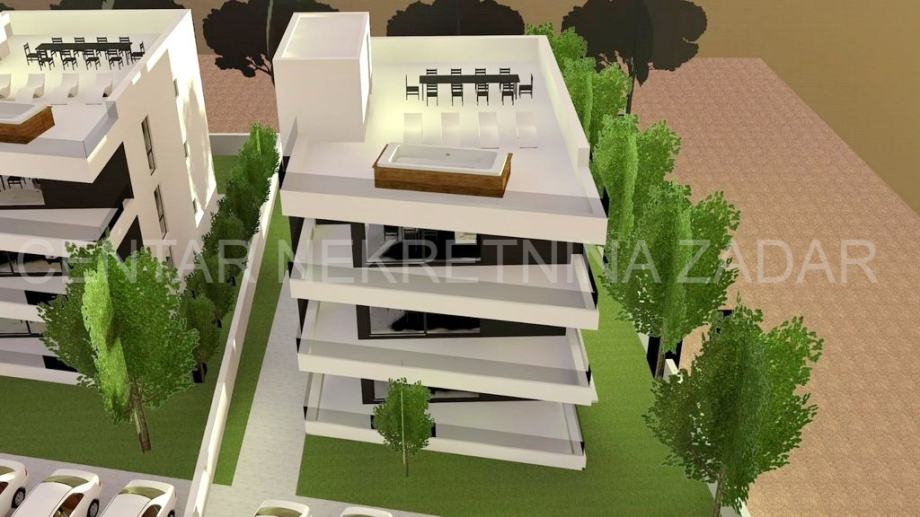 Prodaje se apartman u novogradnji na Viru, u zgradi s tri stambene jedinice. Svaki apartman smješten je na posebnoj etaži (prizemlje, prvi i drugi kat) i svi imaju iste tlocrte.