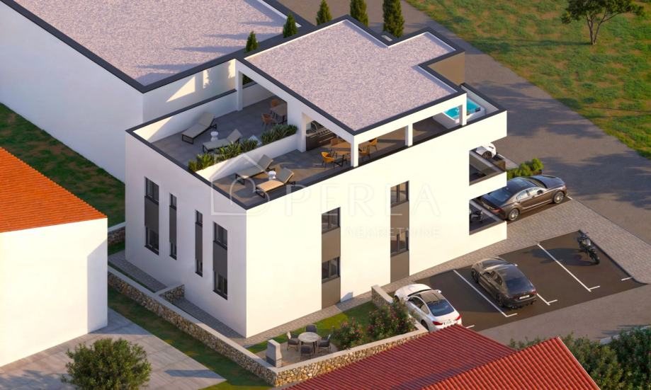 VIR - prodaje se dvosobni apartman novogradnje na 1. katu sa krovnom terasom od 88,21 m2!