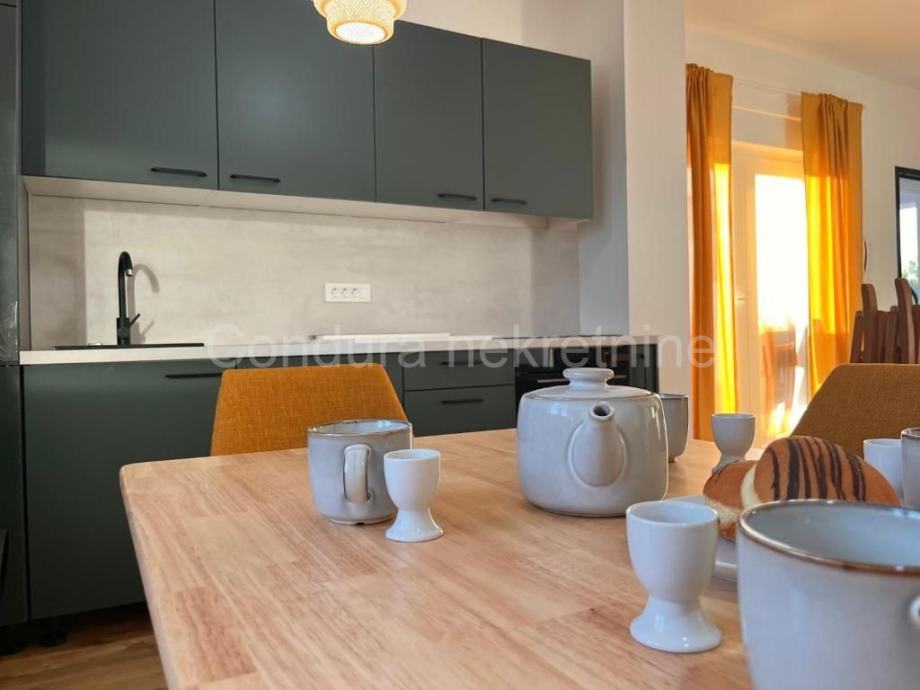 Sastoji se od 2 spavaće sobe koje imaju pogled na more i otoke. Svakodnevni boravak u velikoj i svijetloj open space dnevnoj sobi s blagavaonicom i kuhinjom učiniti će vrlo ugodnim jer se iz istog prostora također može uživati u pogledu na more.