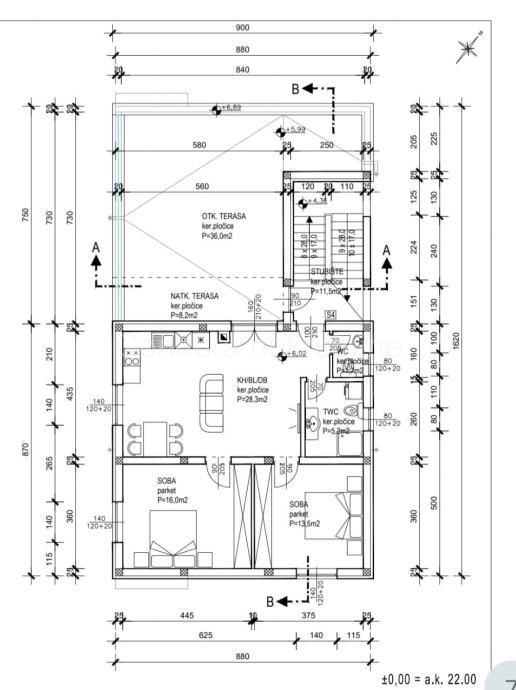 Apartman ukupne stambene površine 87. 15 m2 se nalazi na drugom katu stambene zgrade s ukupno četiri apartmana.